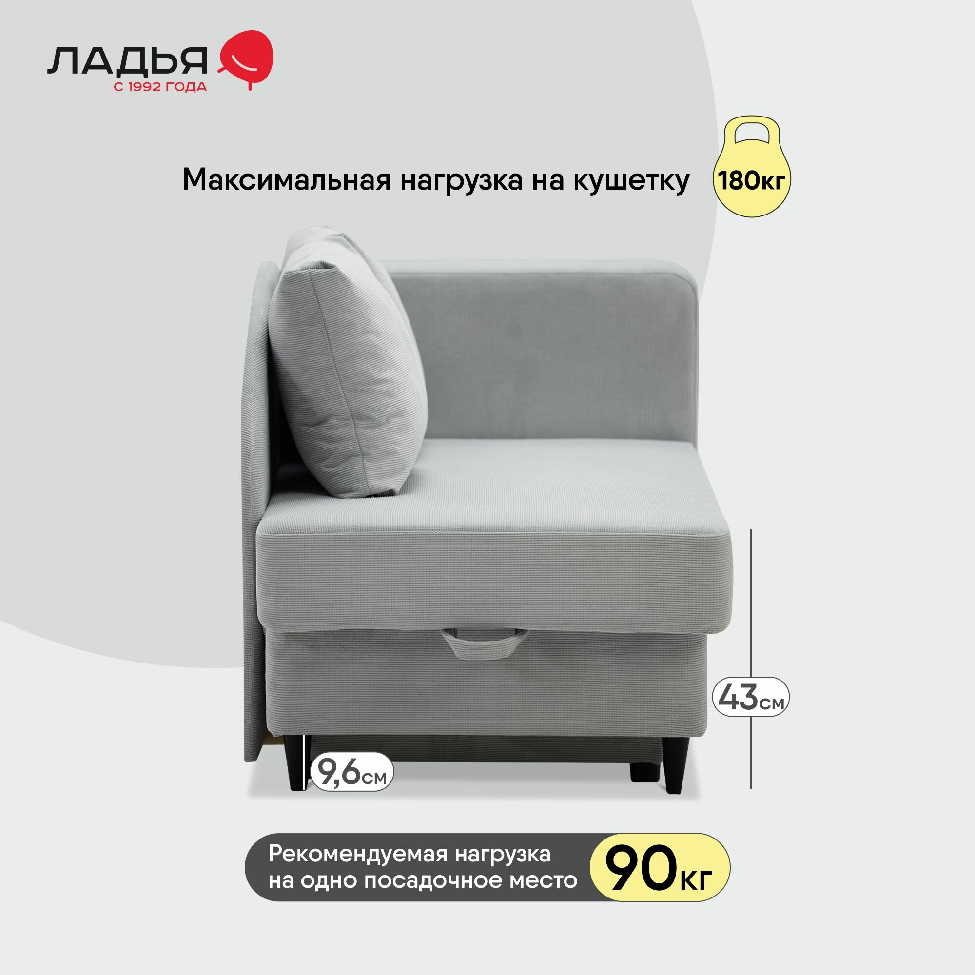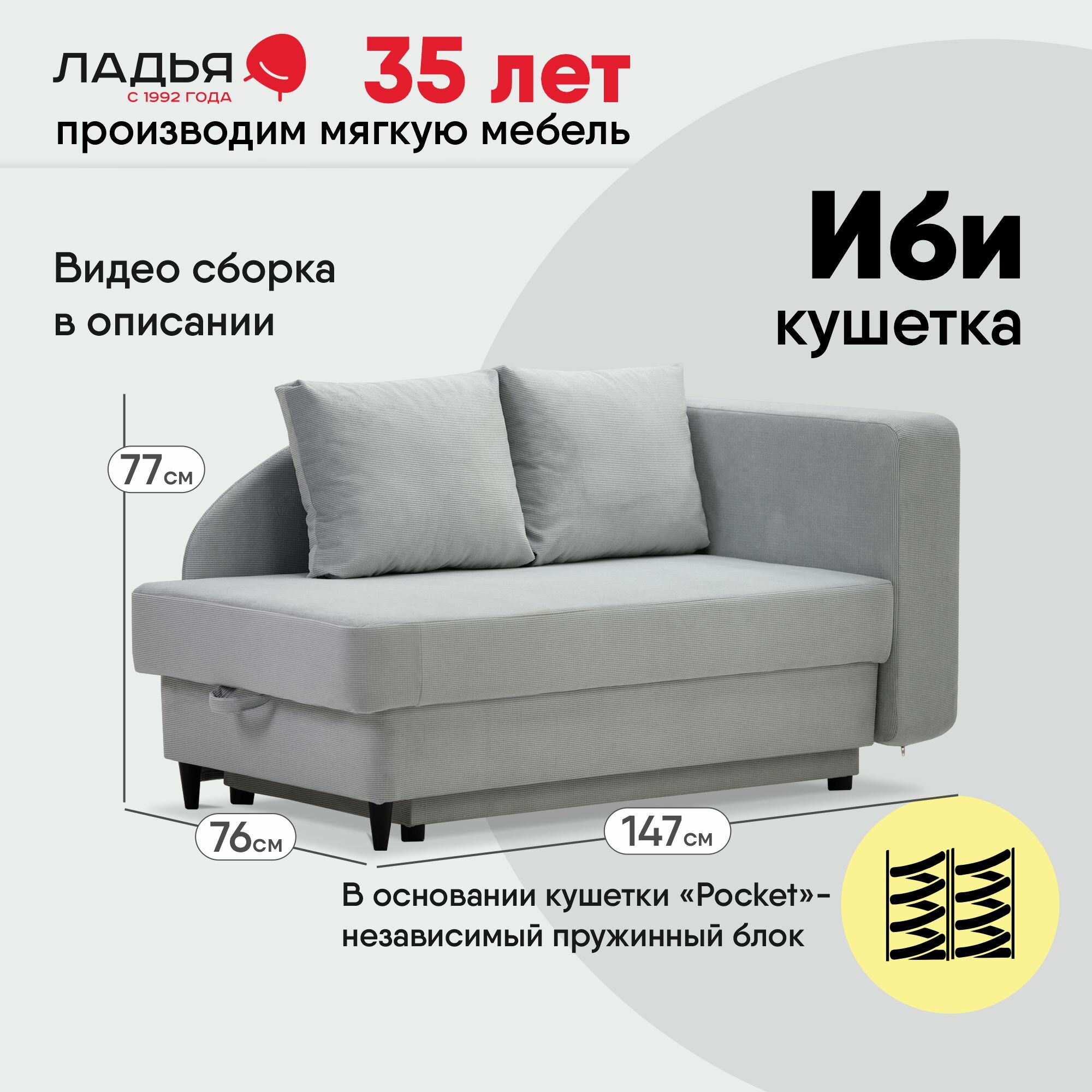 Купить Кушетка Иби , Еврокнижка, размер 147х76х77 см, спальное место:190х72см, правый, Ripple 990