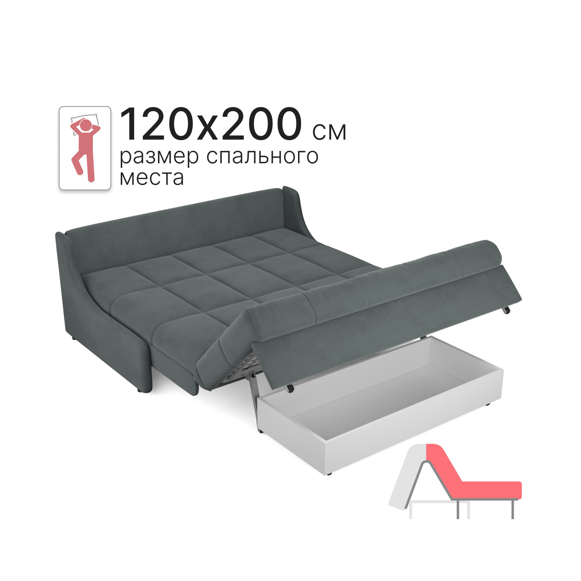 Диван-кровать с ящиком аккордеон на металлокаркасе 120х200 Темно-сер Истван Лайт интересное: