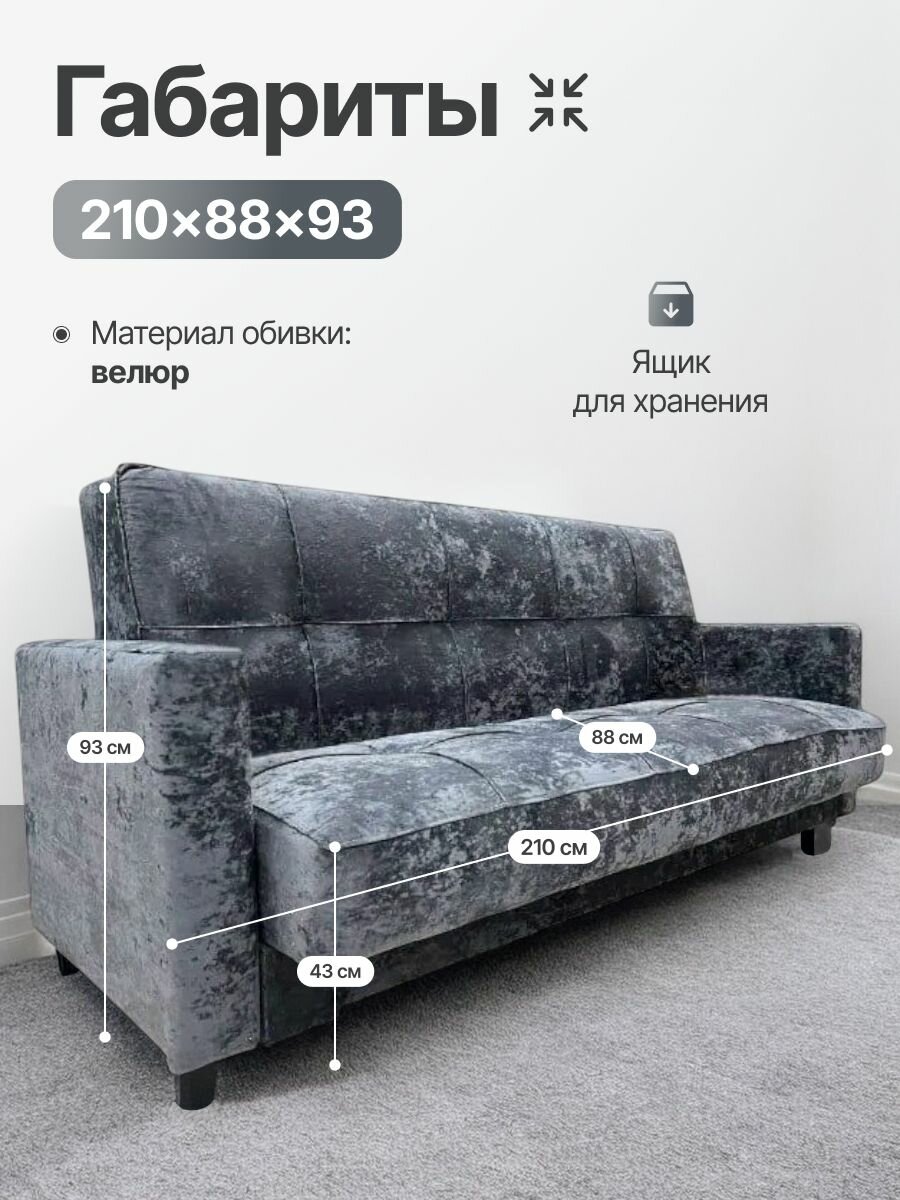Диван раскладной прямой, Жасмин книжка, микровелюр Барс черный