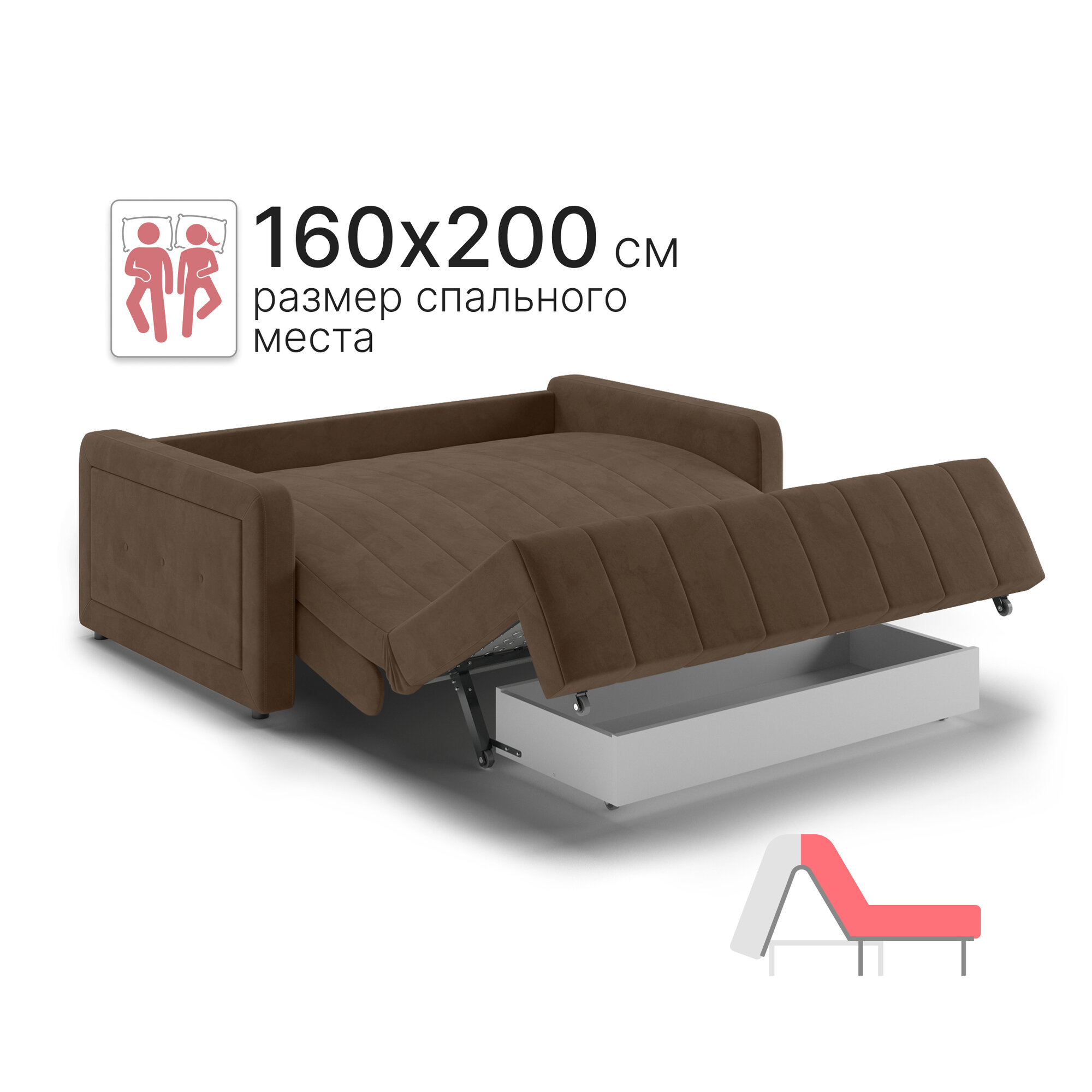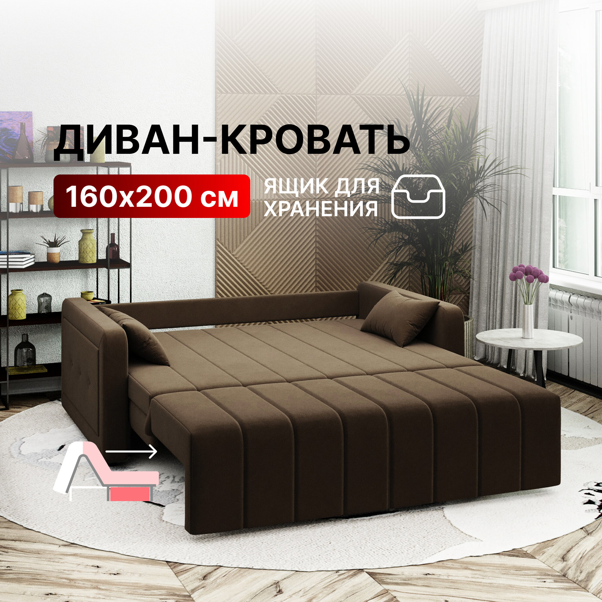 СохранитьДиван-кровать с ящиком раскладной на металлокаркасе, аккордеон, независимый пружинный блок, 160х200 Борго велюр коричневый интересное: