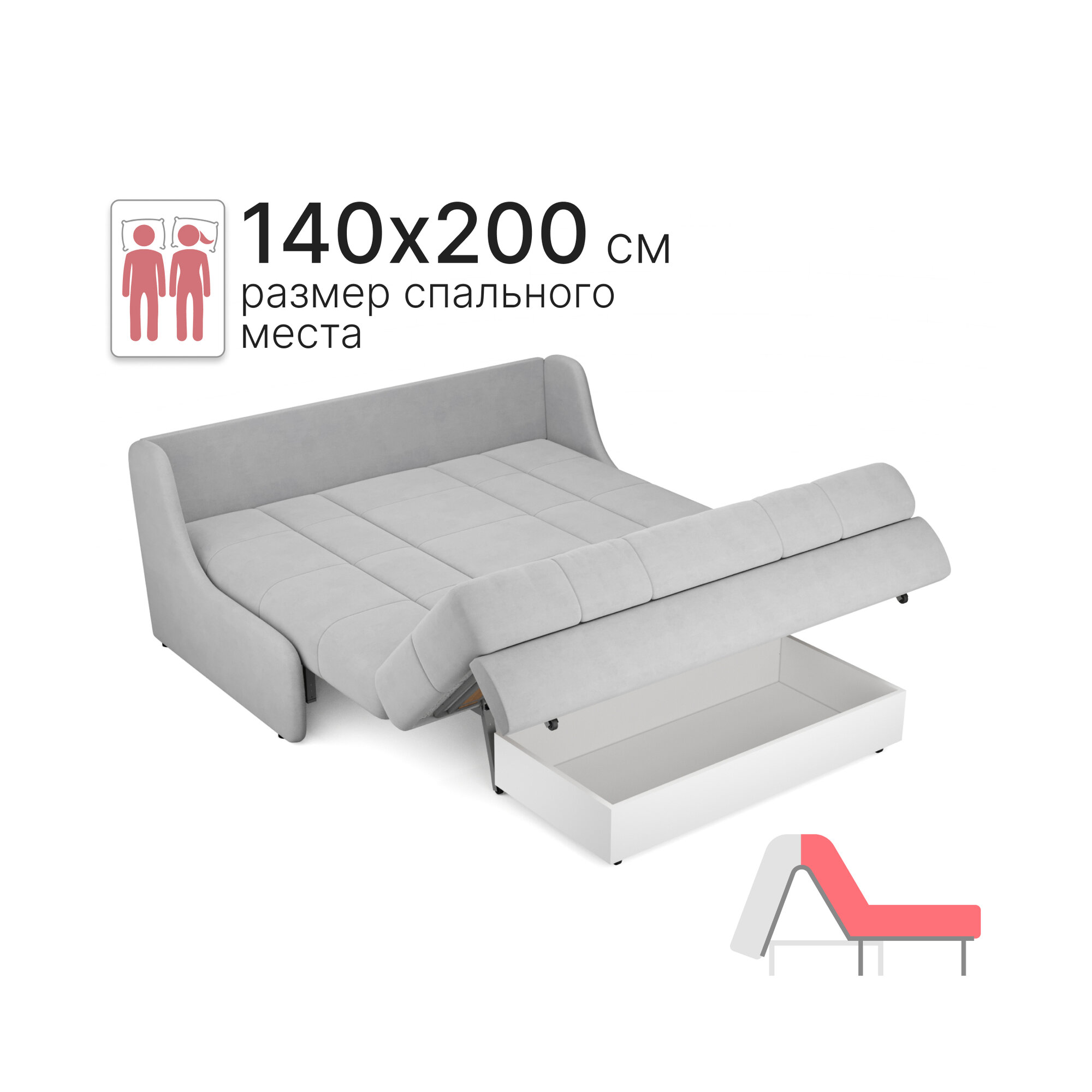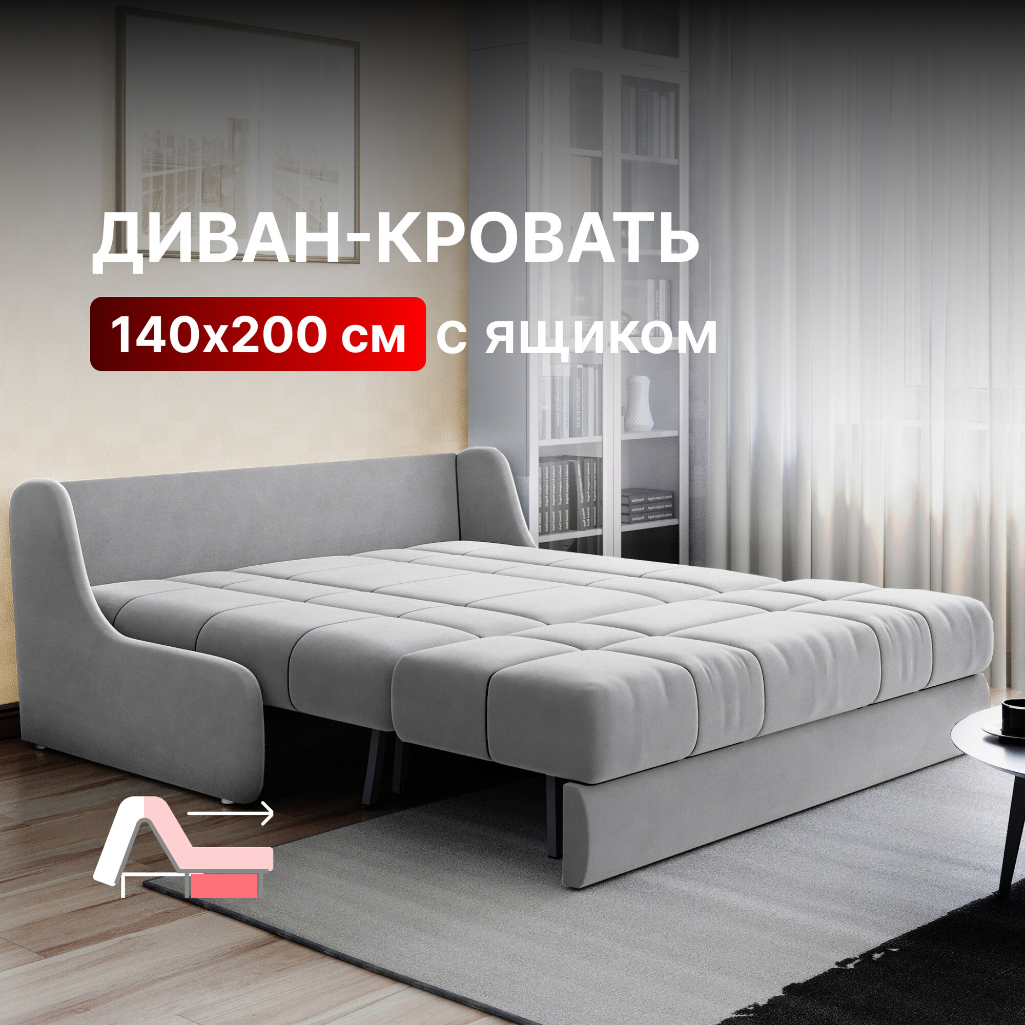 Купить Диван-кровать раскладной Прямой с ящиком, Аккордеон, 140х200 спальное место, Истван, велюр светло-серый