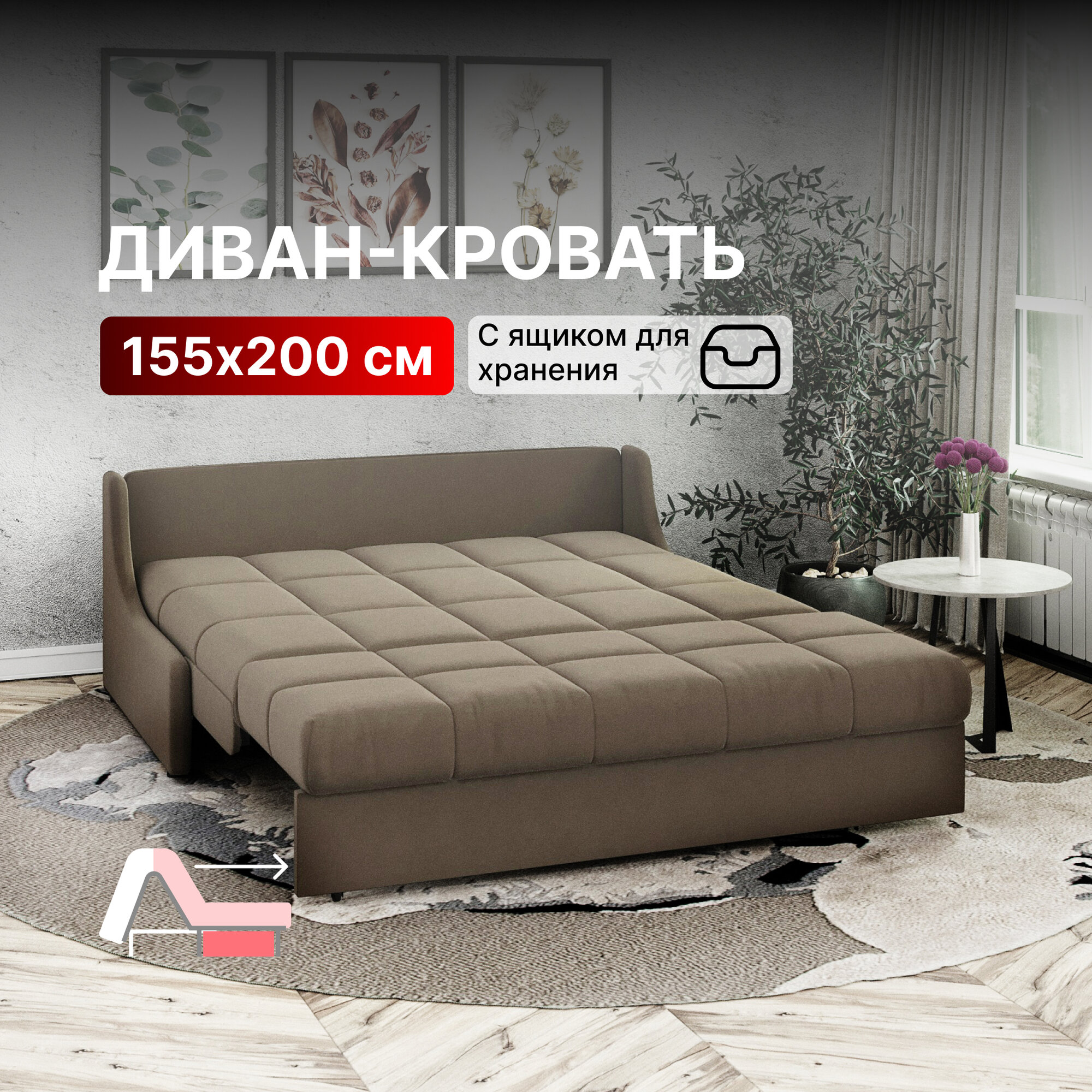 СохранитьДиван-кровать раскладной с ящиком, Аккордеон, независимый пружинный блок, 160х200 спальное место, Истван, коричневый интересное: