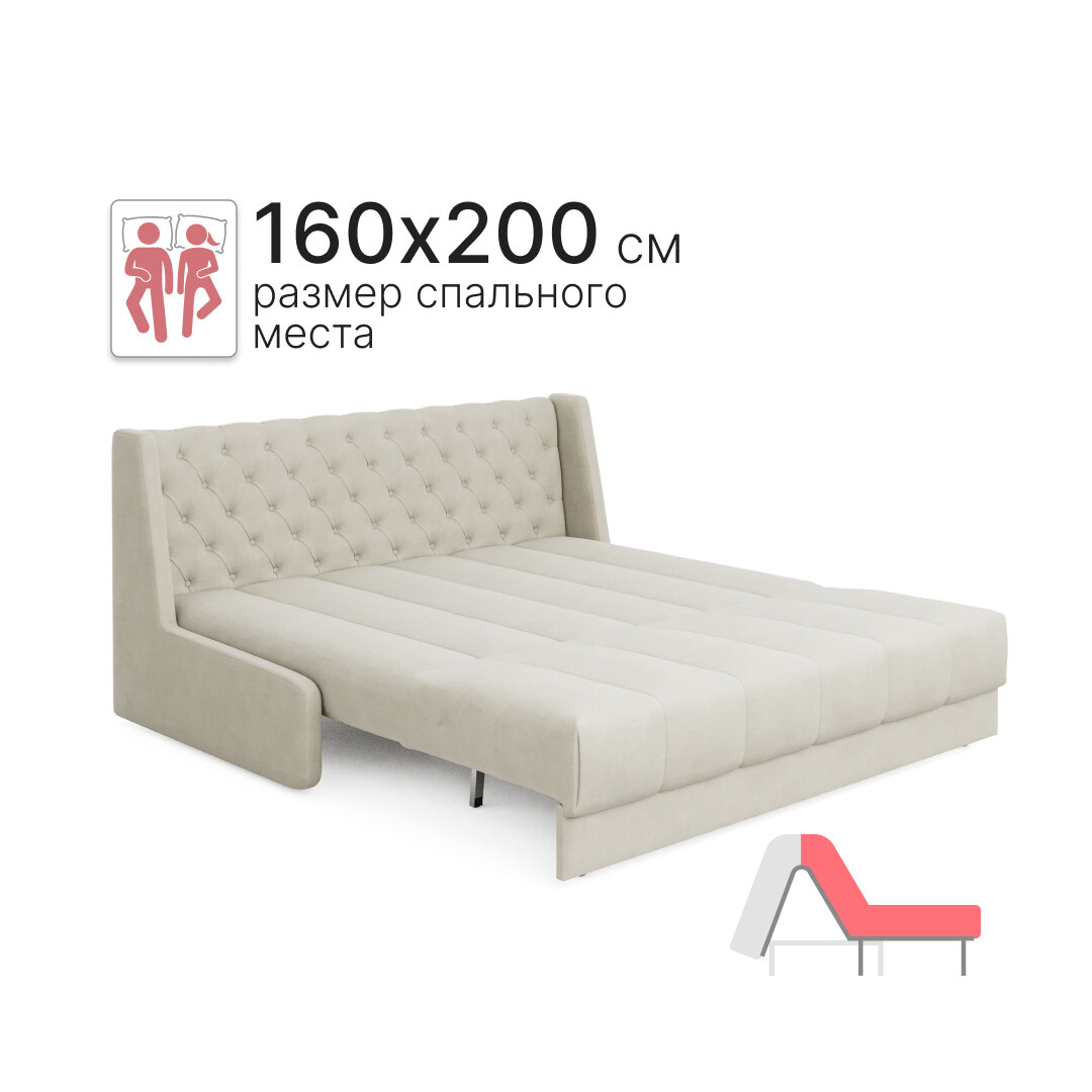 Купить Диван-кровать раскладной прямой на металлокаркасе, аккордеон, ортопедический, 160х200 Ричард каретка, велюр светло-бежевый