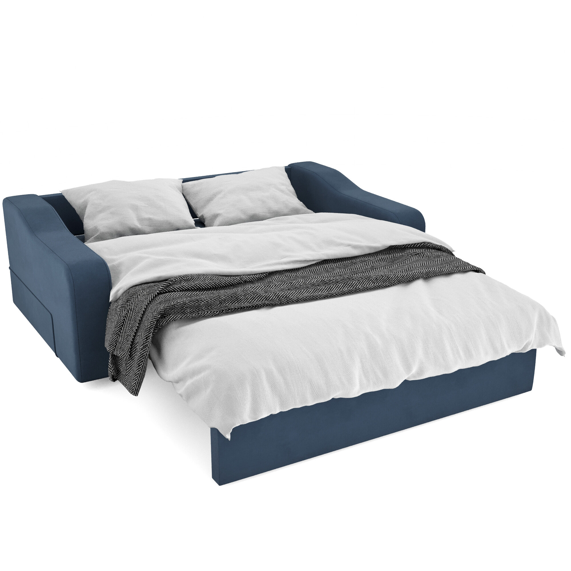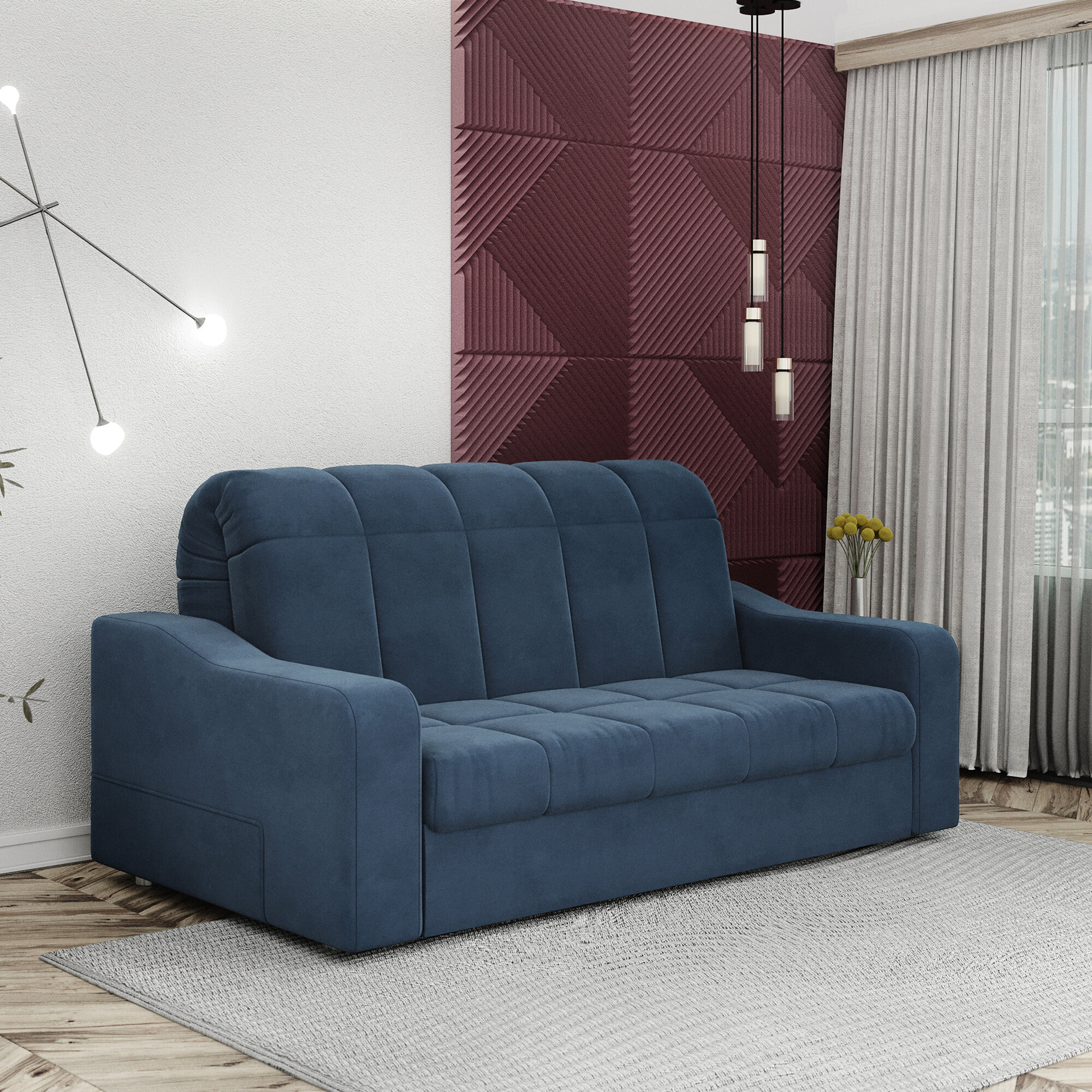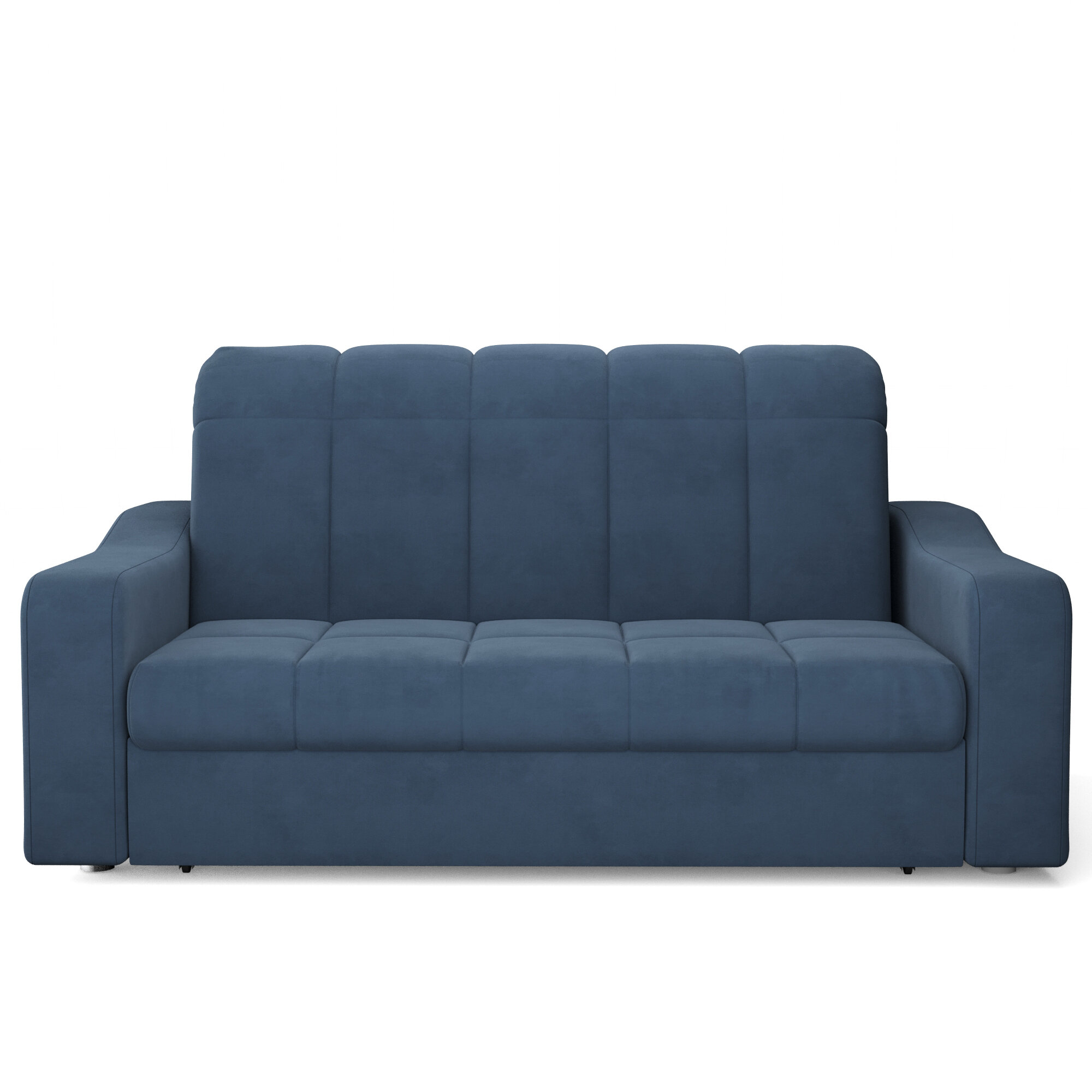 Купить Диван-кровать раскладной Прямой, Аккордеон, ортопедический, 140х200 спальное место, Стелла, велюр синий