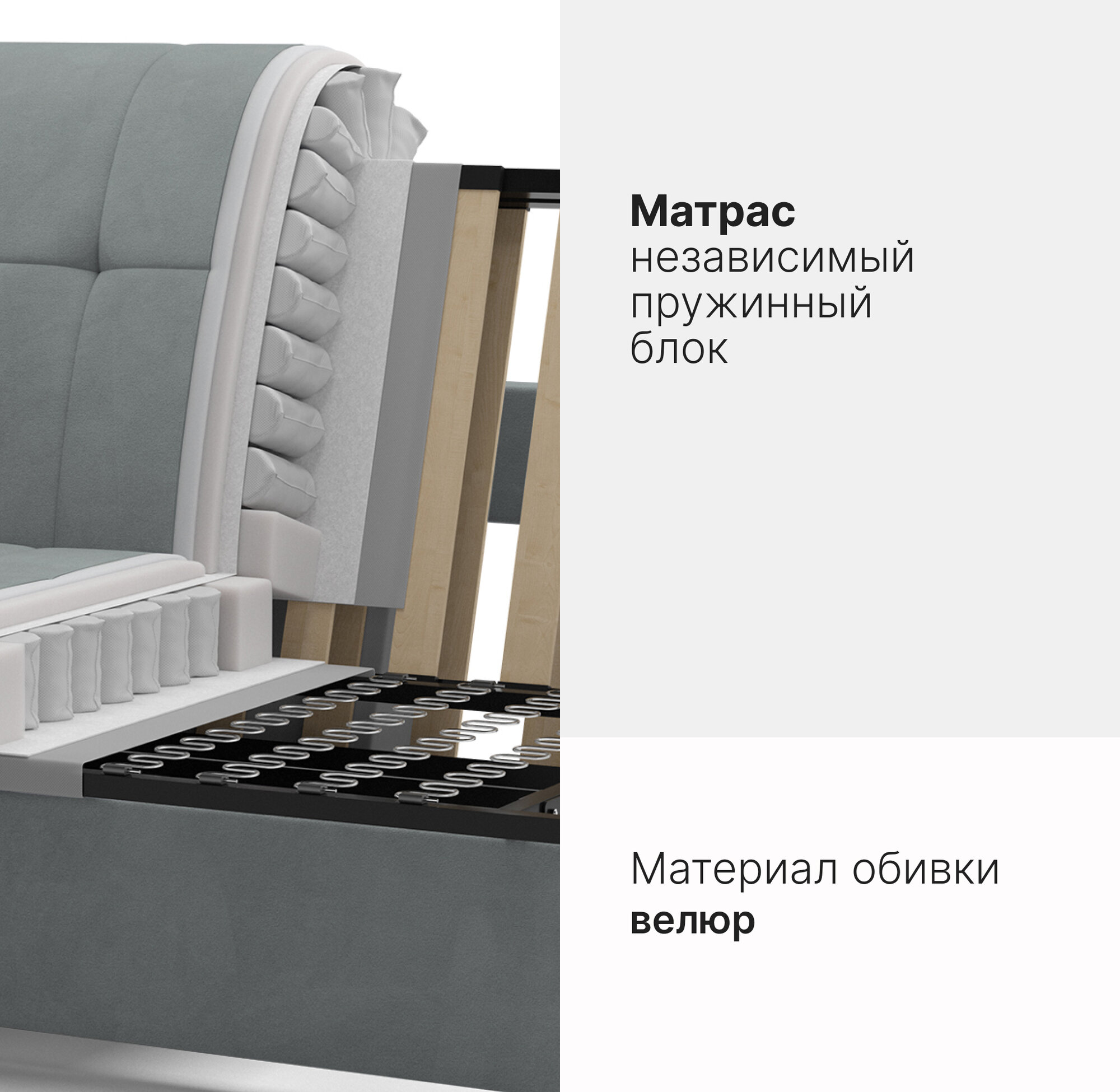 СохранитьДиван-кровать раскладной прямой на металлокаркасе, аккордеон, независимые пружины, 160х200 спальное место, велюр серый интересное: