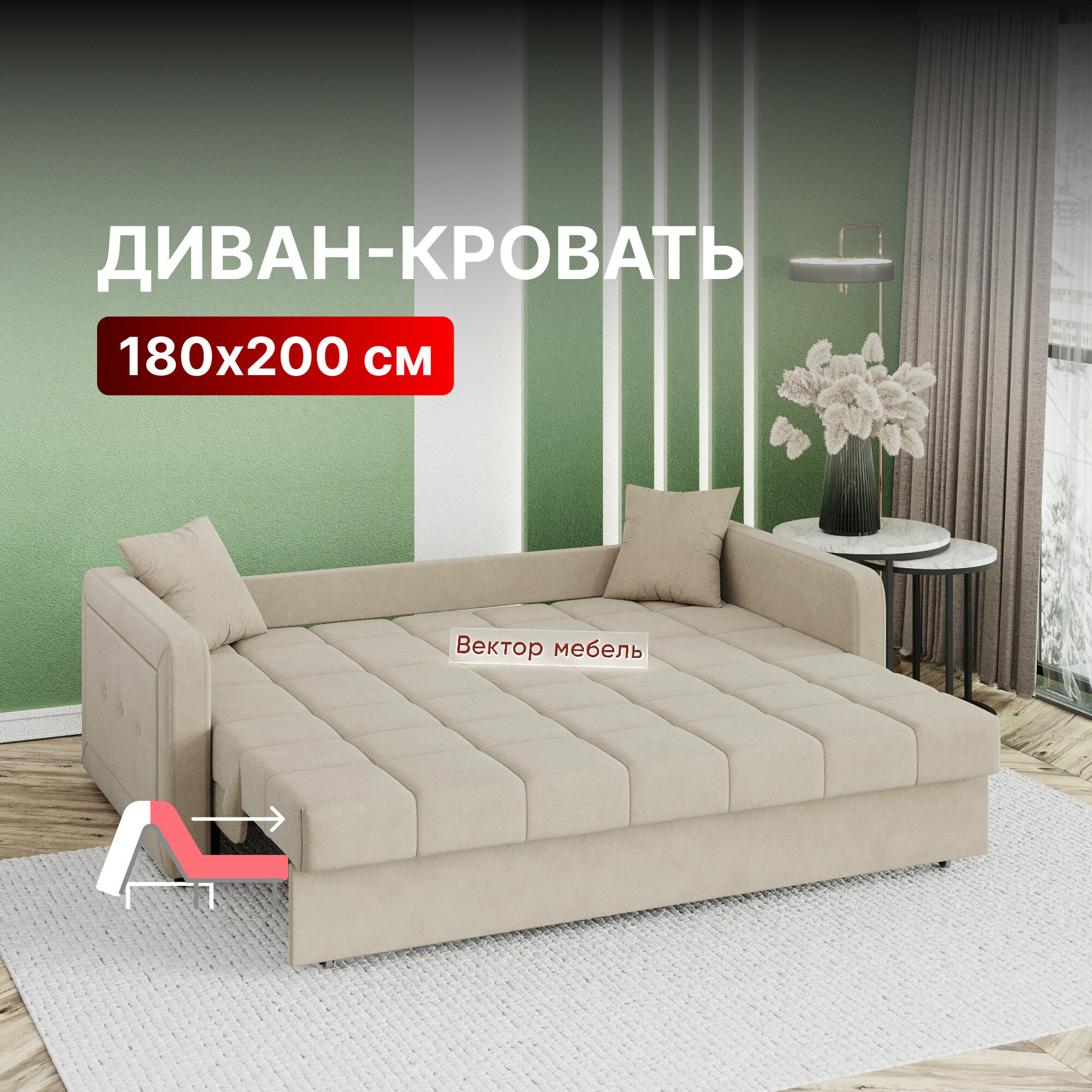 СохранитьДиван-кровать раскладной Порту Аккордеон, независимый пружинный блок, 180х200 спальное место, велюр бежевый интересное: