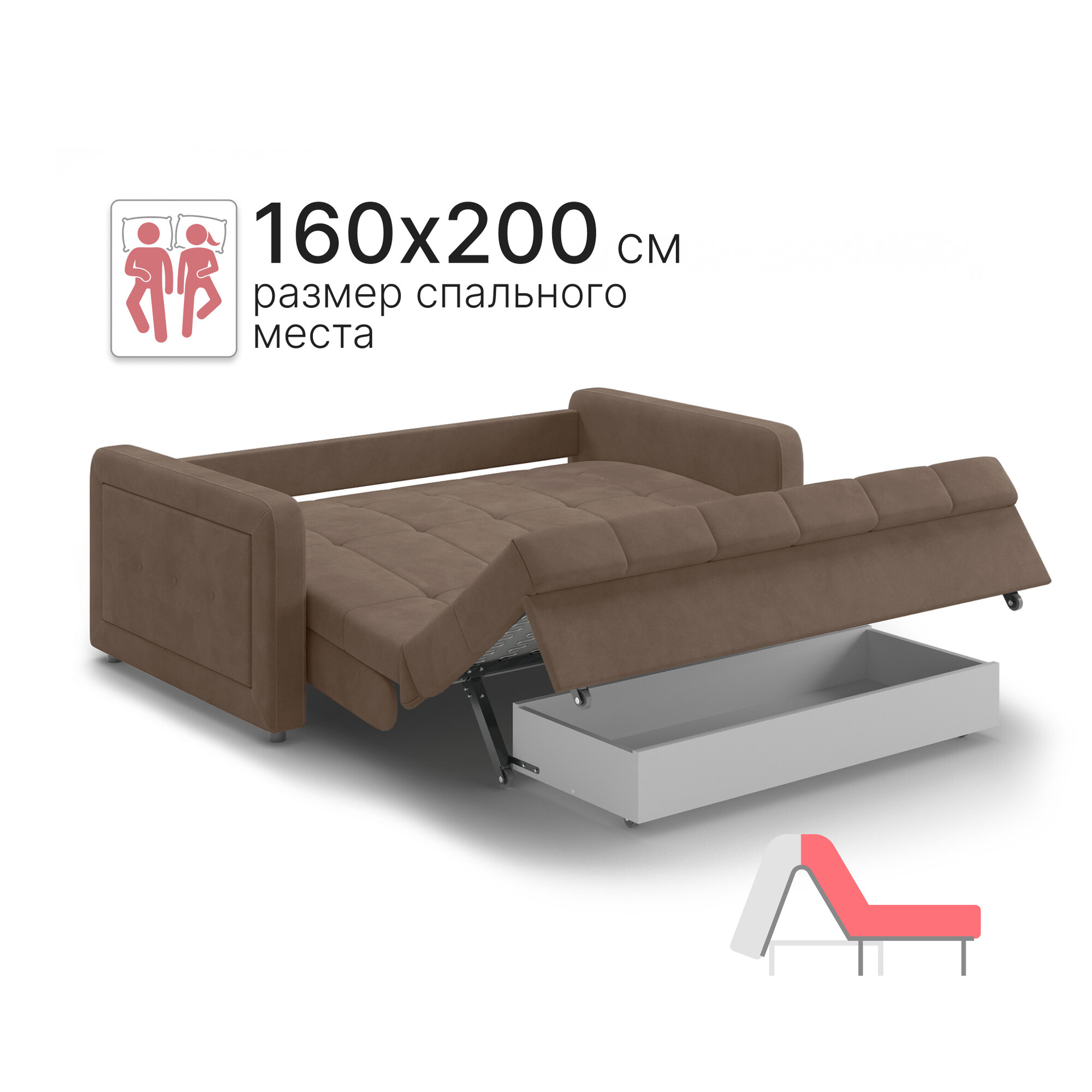 СохранитьДиван-кровать с ящиком раскладной на металлокаркасе, Аккордеон, независимые пружины, 160х200 Порту, велюр коричневый интересное: