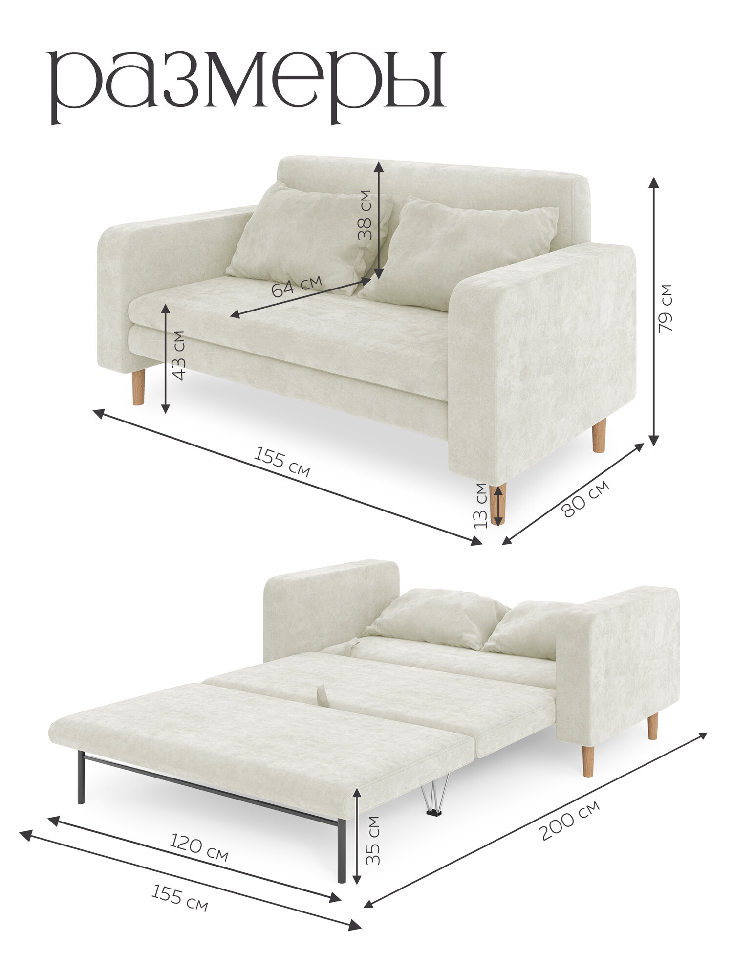 СохранитьДиван-кровать в спальню, раскладной диван для дома, Корги,120х200, белый (слоновая кость) интересное: