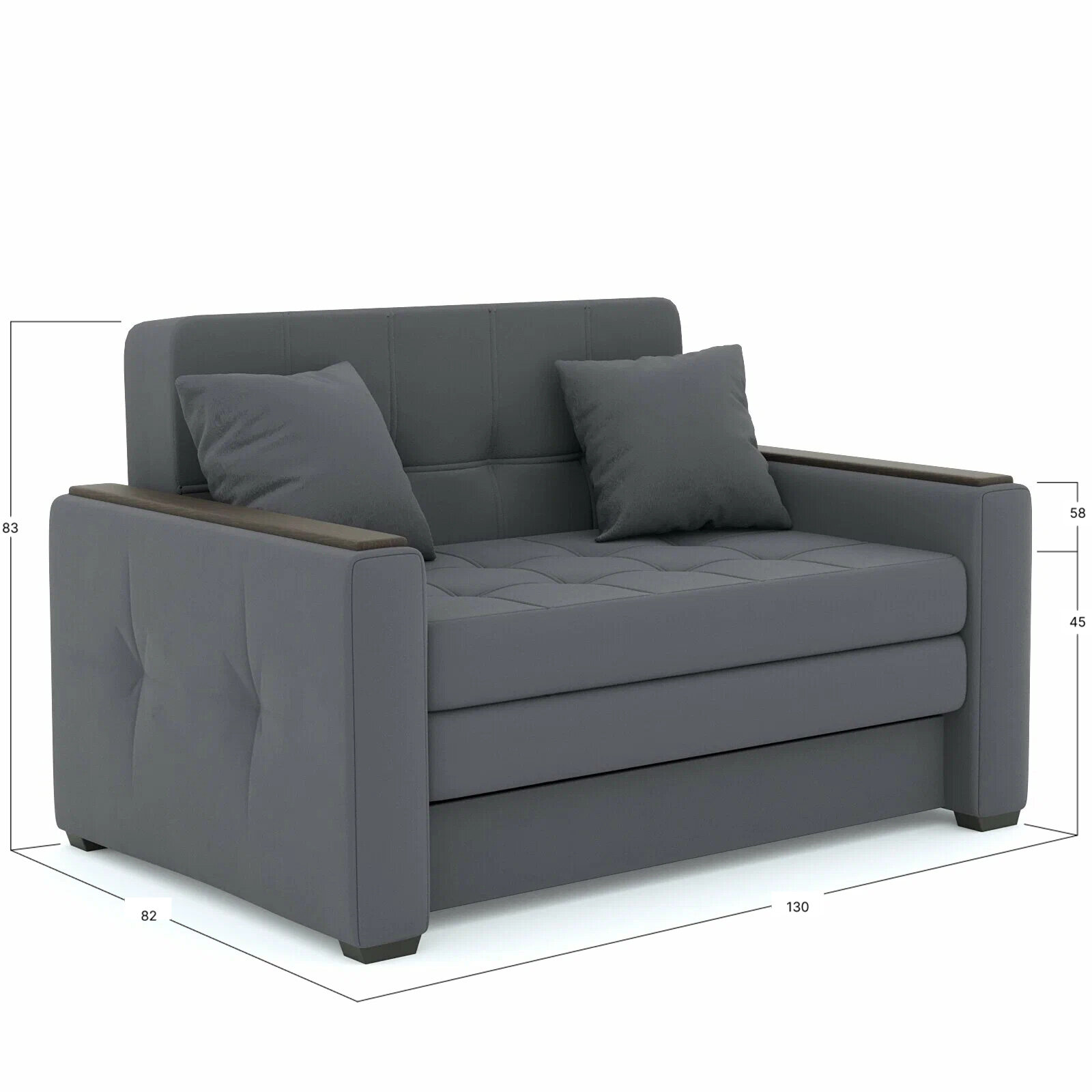 Диван Этро Люкс 130, серый велюр, механизм трансформации - аккордеон
