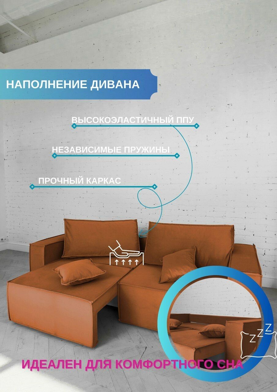 Диван DIVANSON'S "Лофт", ортопедический, механизм еврокнижка, искусственный велюр, ящик для белья