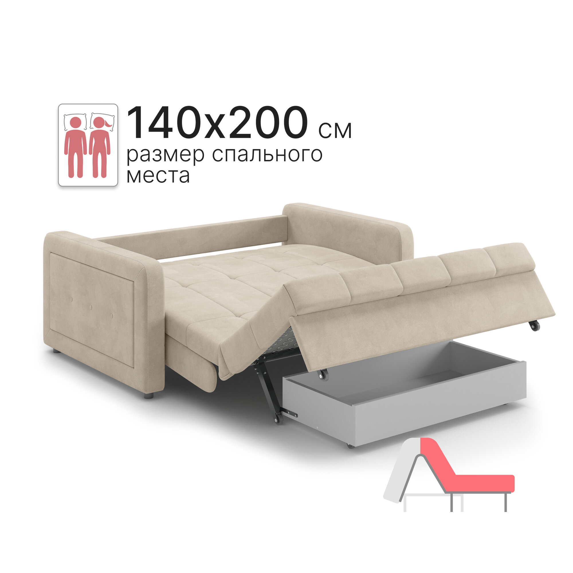 Купить Диван-кровать раскладной с ящиком Прямой, Аккордеон, независимые пружины, 140х200 спальное место, велюр бежевый