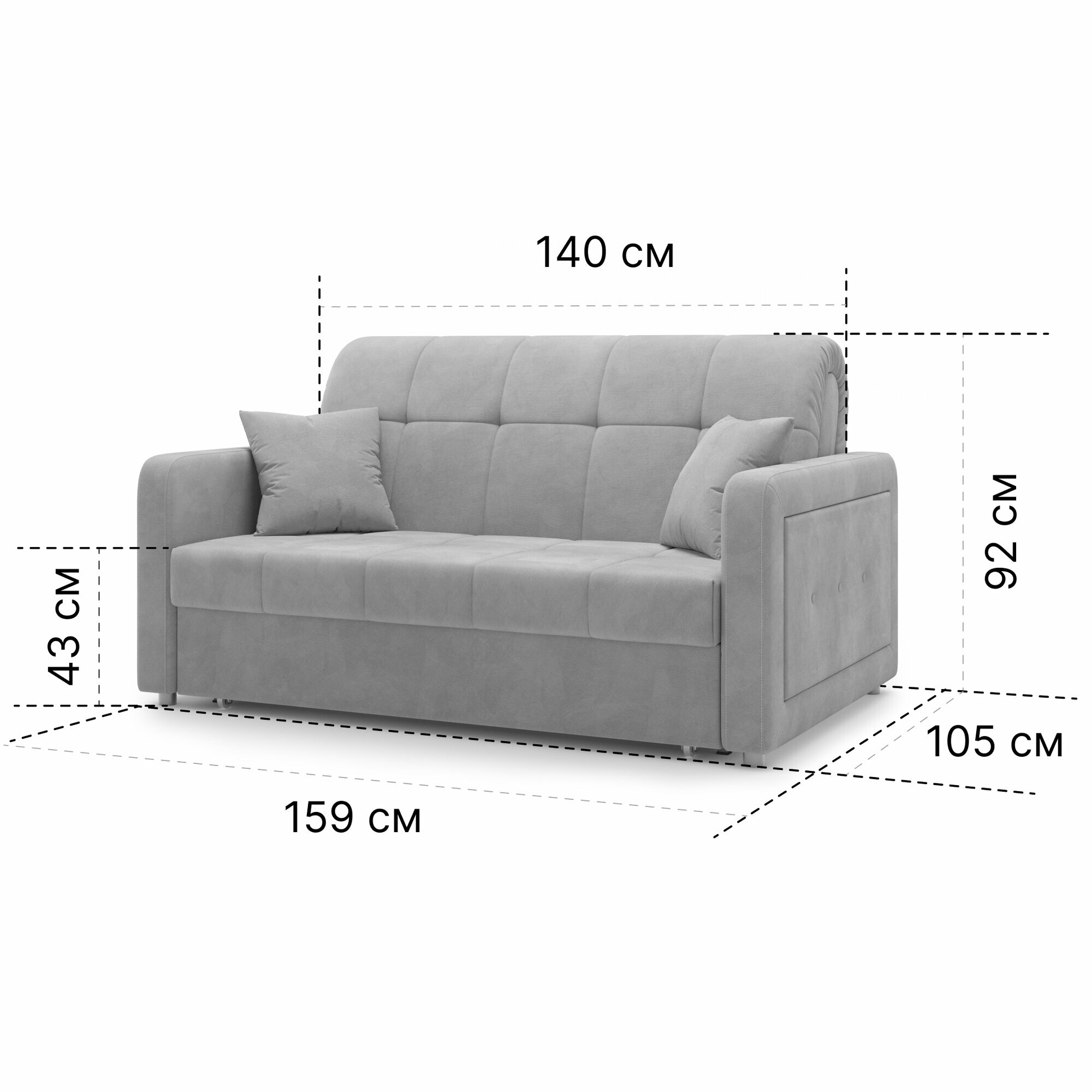 Диван-кровать раскладной Стелла с ящиком, Аккордеон, Независимые пружины, 140х200 спальное место, велюр светло-серый