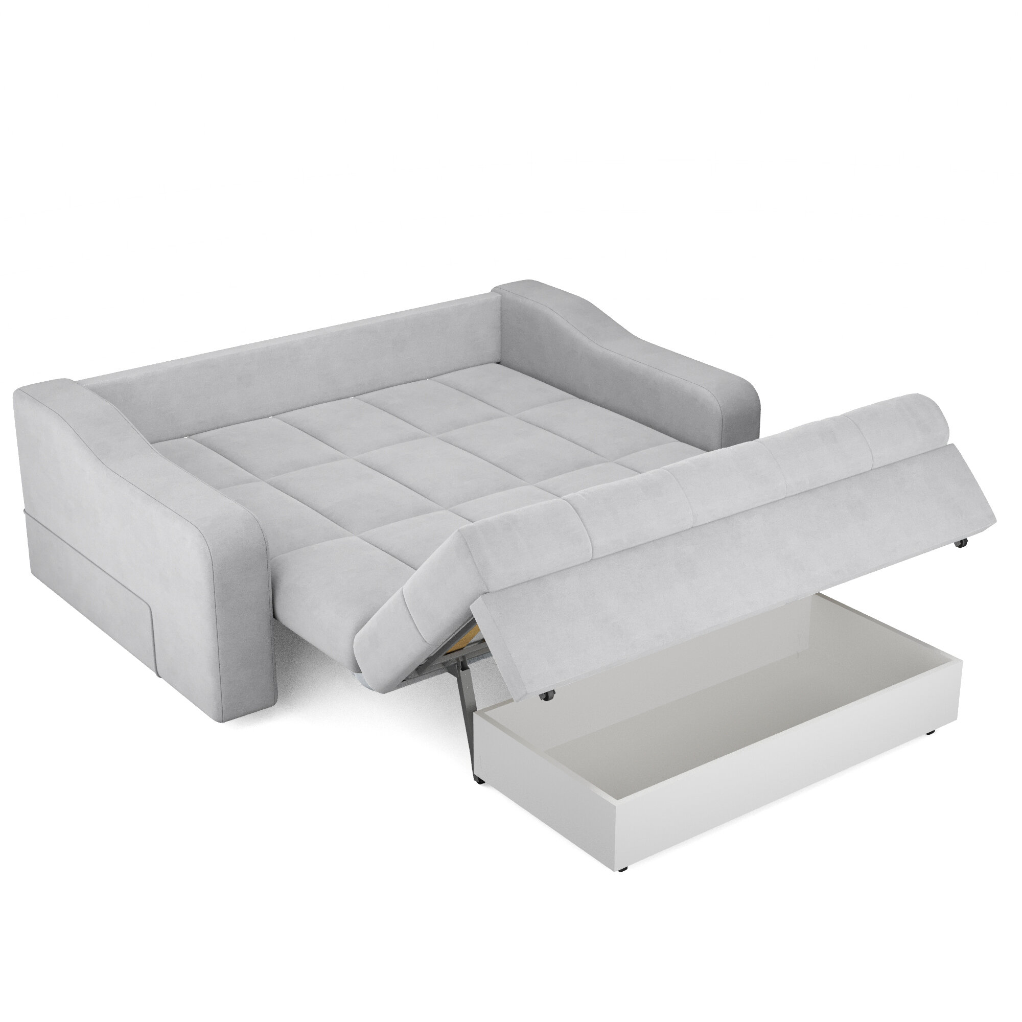 Купить Диван-кровать раскладной Стелла с ящиком, Аккордеон, Независимые пружины, 140х200 спальное место, велюр светло-серый