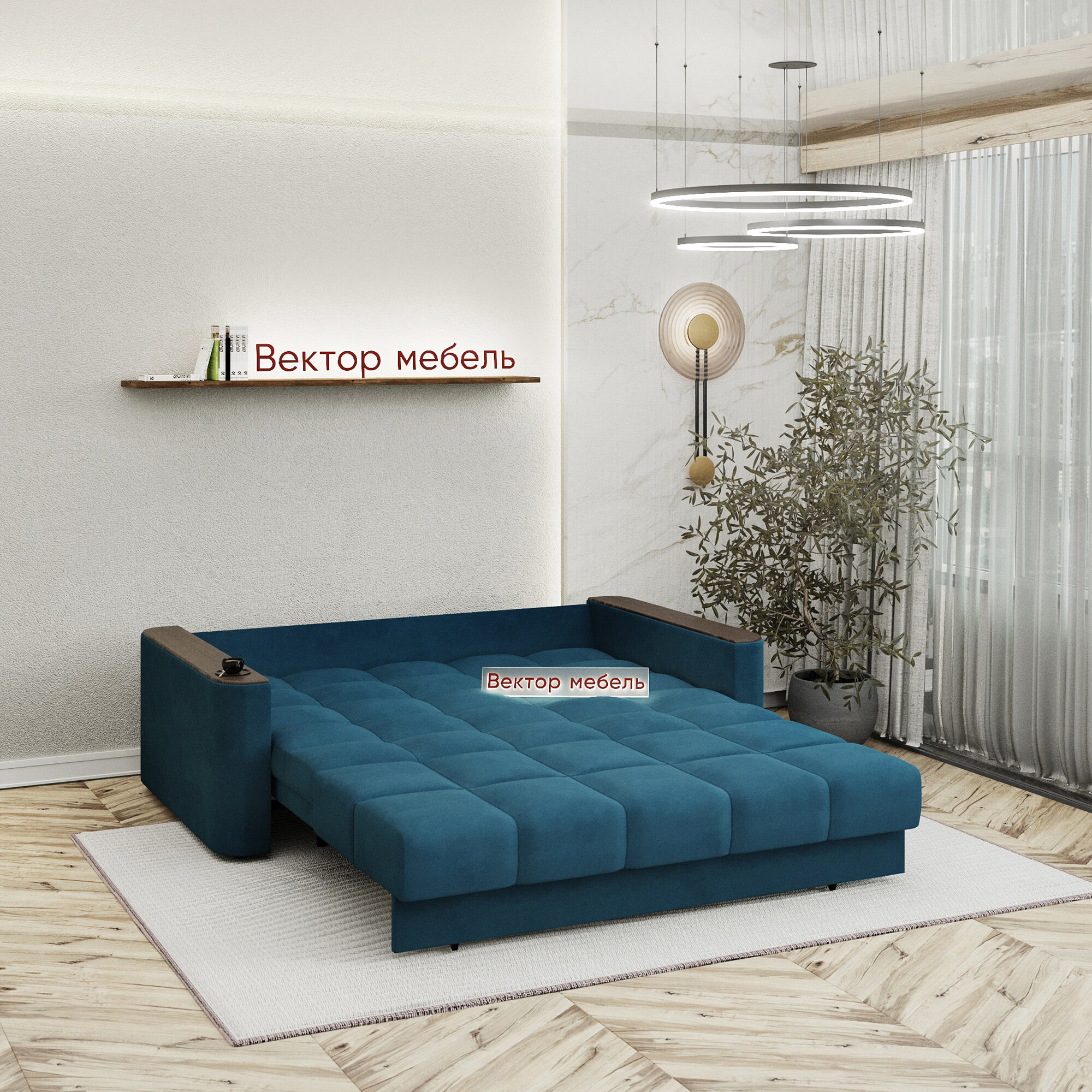 Диван-кровать Вектор Валенсия с ящиком, велюр, аккордеон, 160х200см