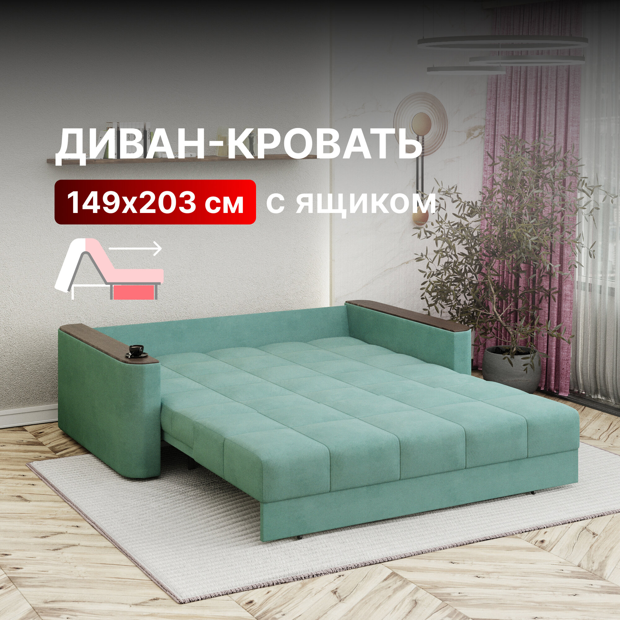СохранитьДиван-кровать с ящиком раскладной Прямой на металлокаркасе, Аккордеон, ортопедический, 150х200, Валенсия, велюр мятный интересное: