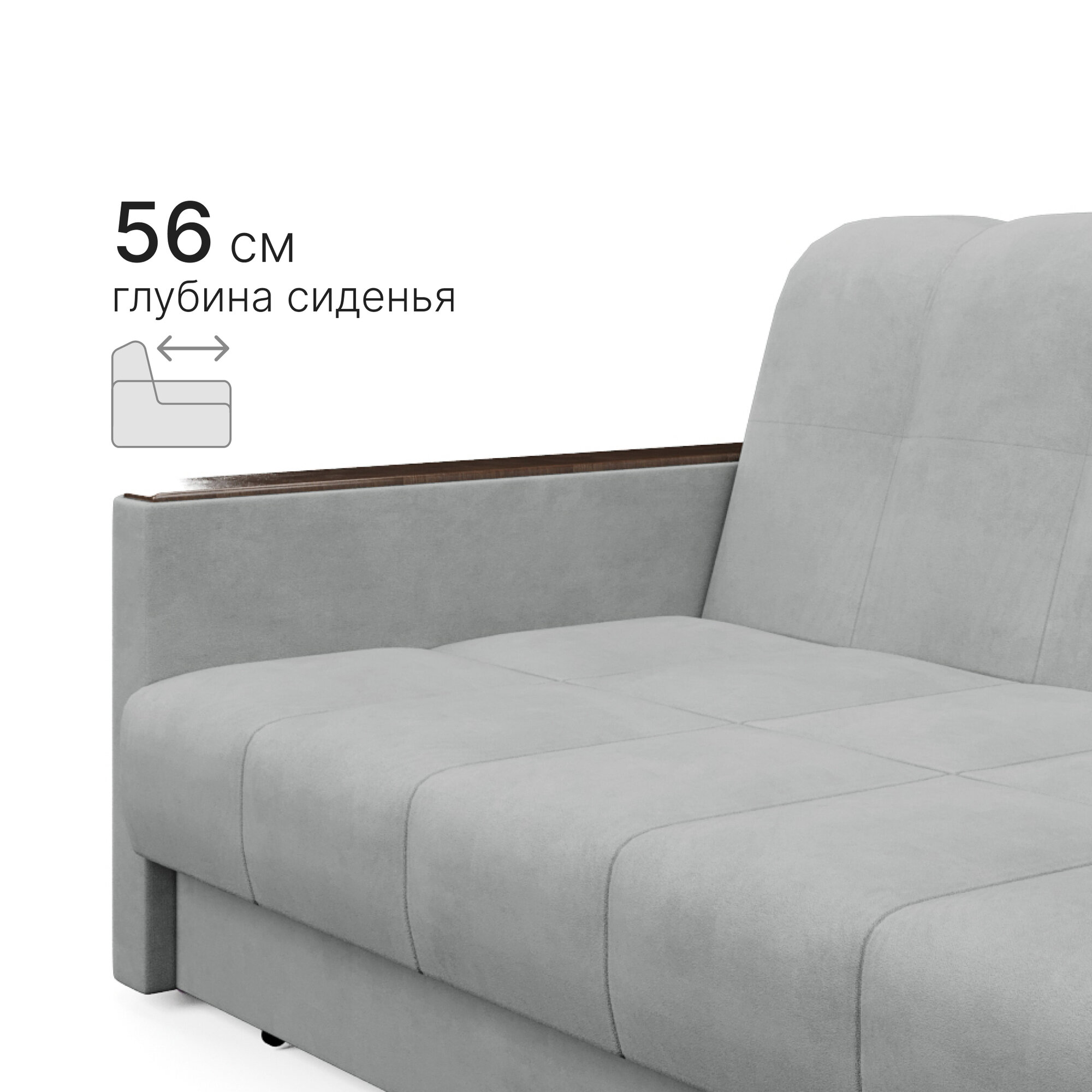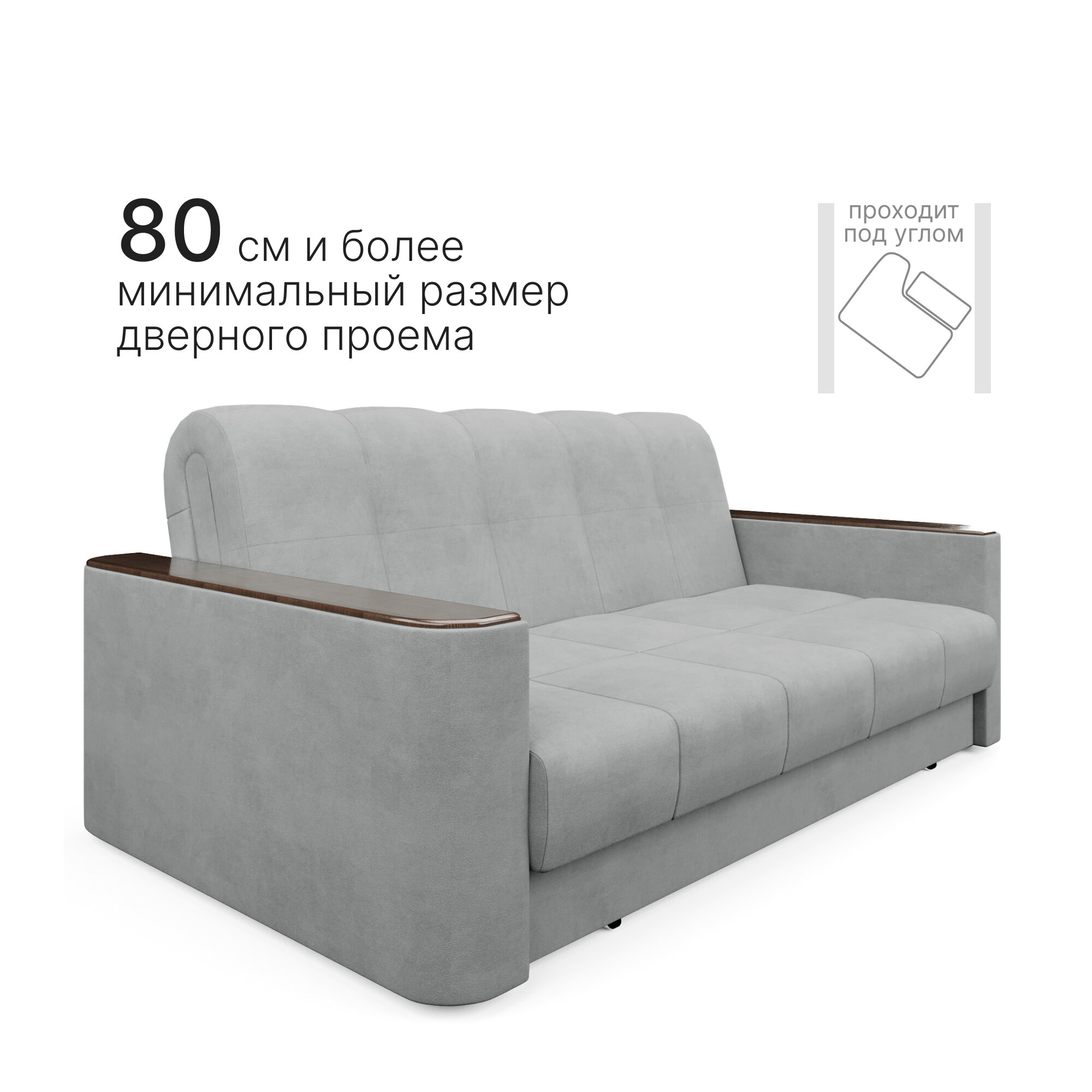 Диван - кровать прямой Ванкувер Лайт, механизм еврокнижка, 212 х 77 х 77 см, Серый