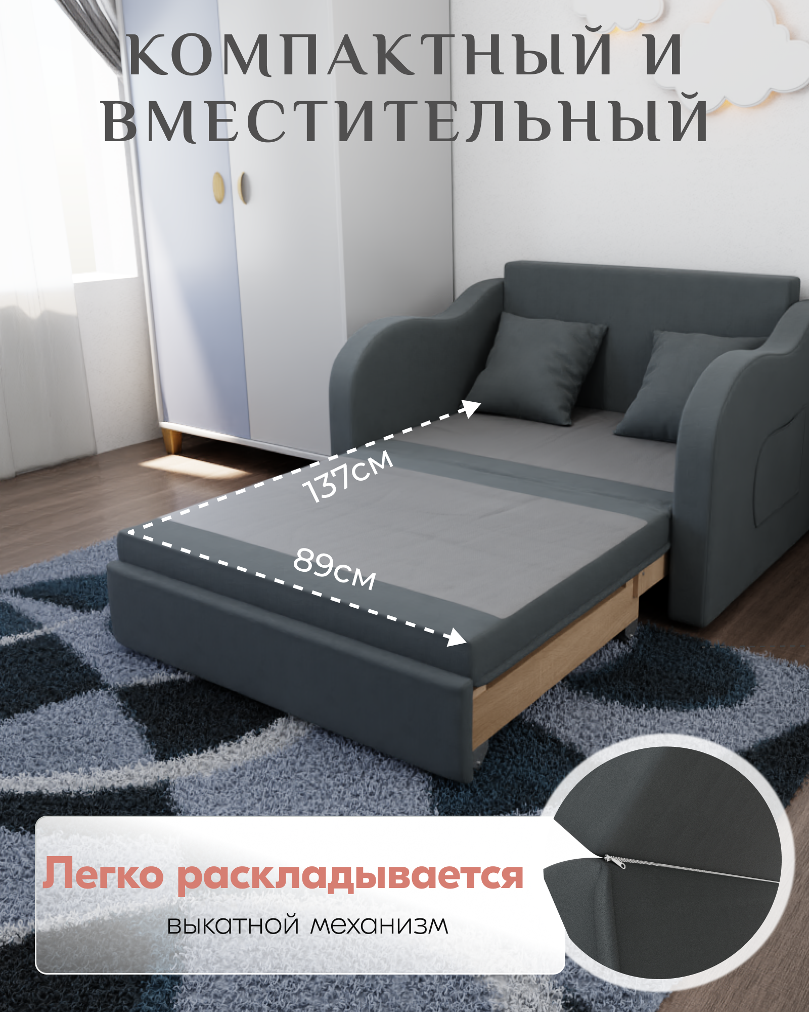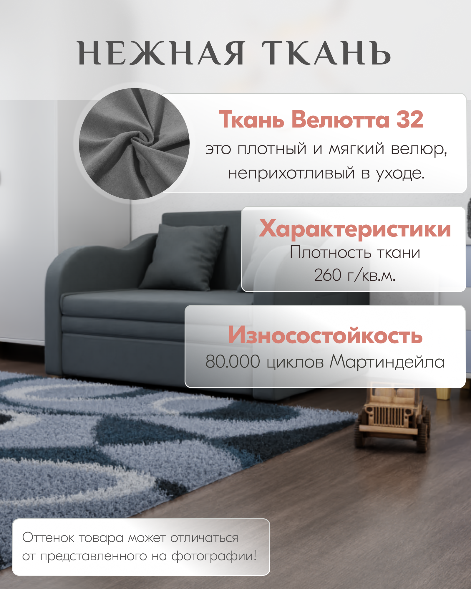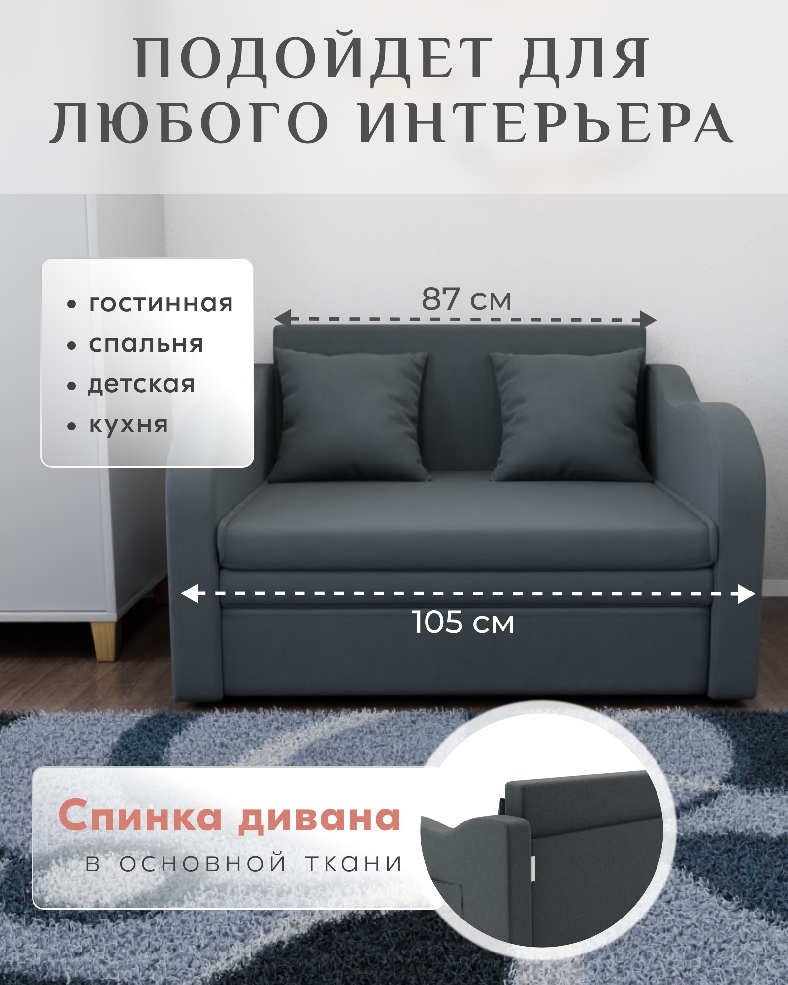 СохранитьДиван Бали прямой, размеры 105x75x87 см, Велютта люкс 32. Серый, велюр. интересное: