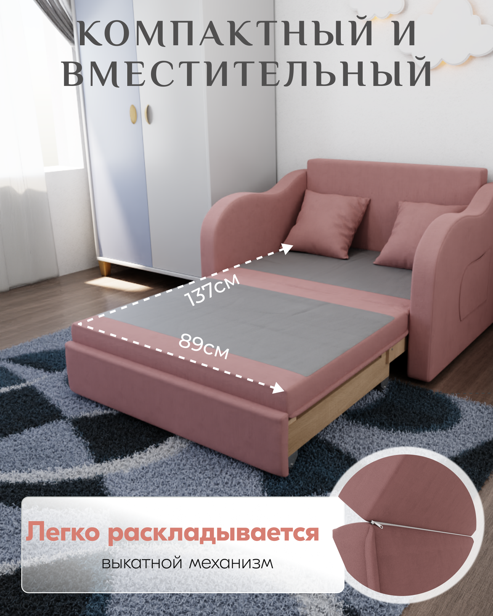 СохранитьДиван Бали прямой, размеры 105x75x87 см, Велютта люкс 62. Розовый, велюр. интересное: