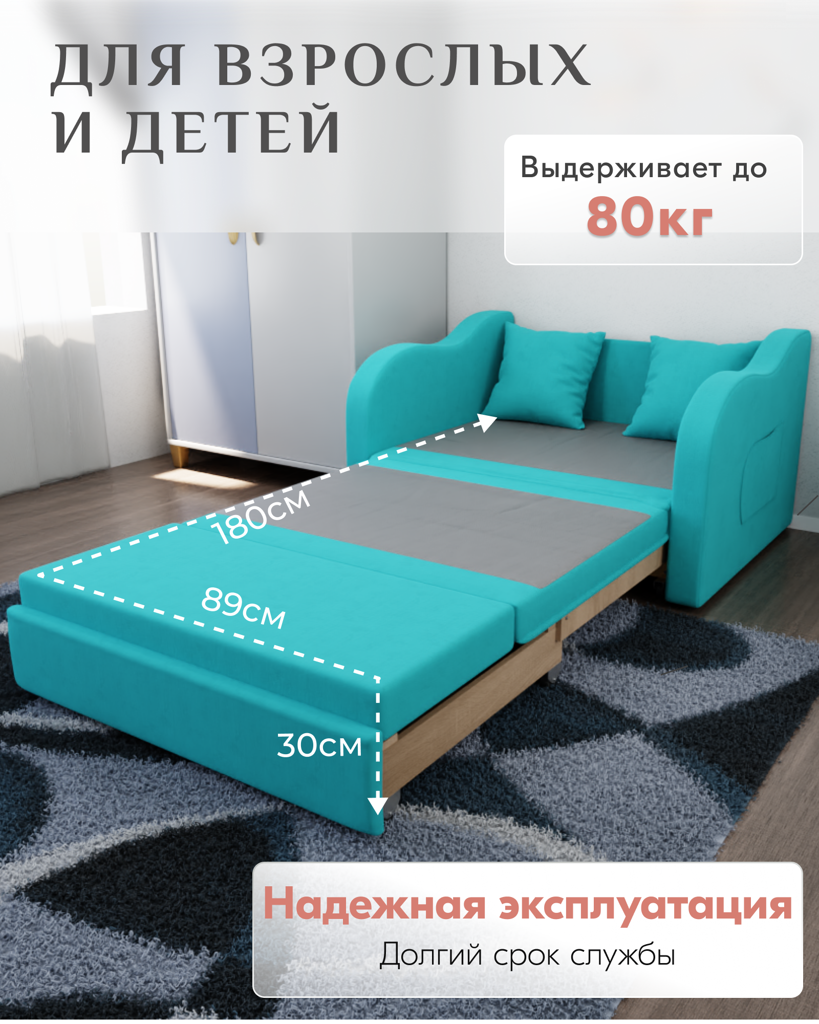 СохранитьДиван Бали прямой, размеры 105x75x87 см, Велютта люкс 44. Бирюзовый, велюр. интересное: