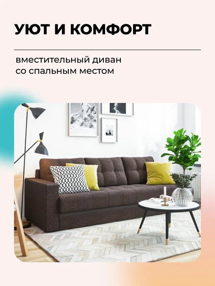 Прямой диван-кровать с ящиком для хранения Атланта 2.0 НПБ, еврокнижка, рогожка Malmo шоколад, 235х105х87 см интересное: