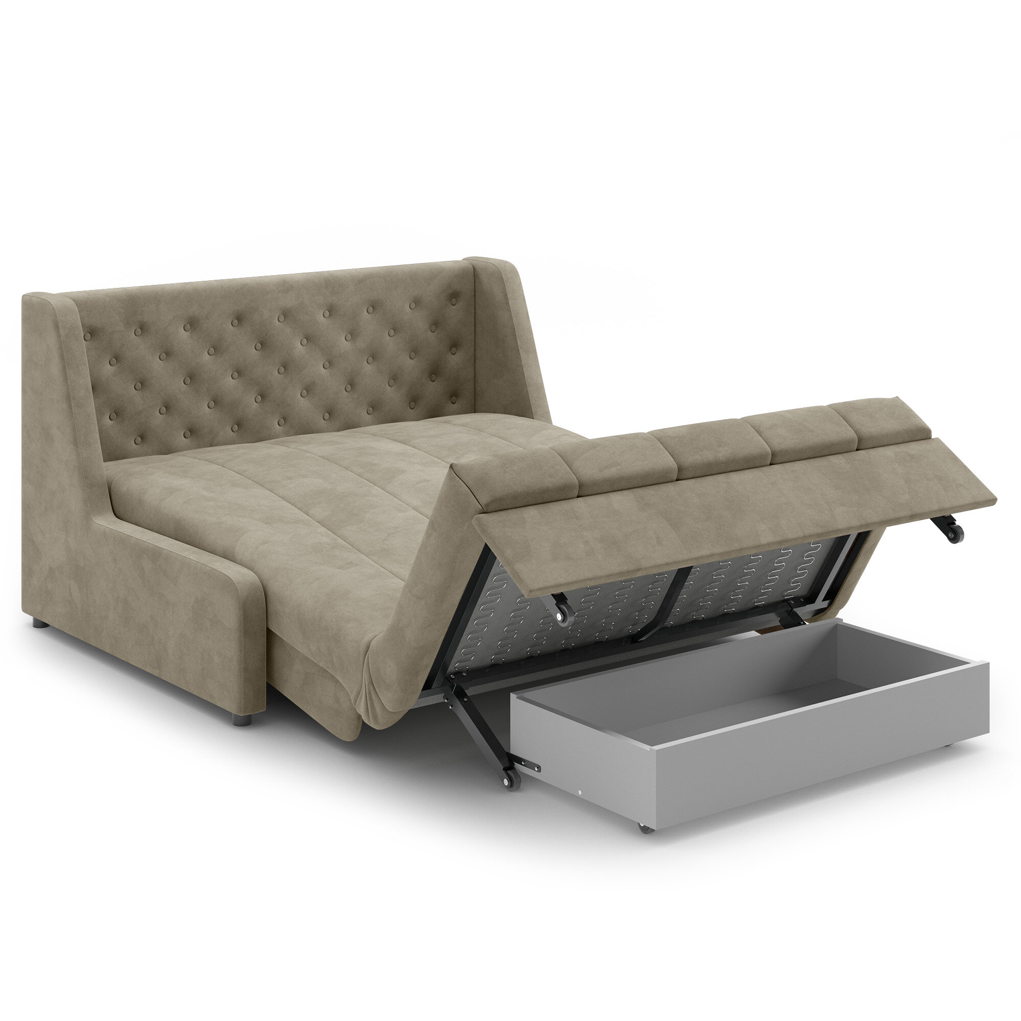 Купить Диван-кровать с ящиком раскладной Прямой на металлокаркасе, Аккордеон, ортопедический, 140х200, Вернисаж, велюр бежевый