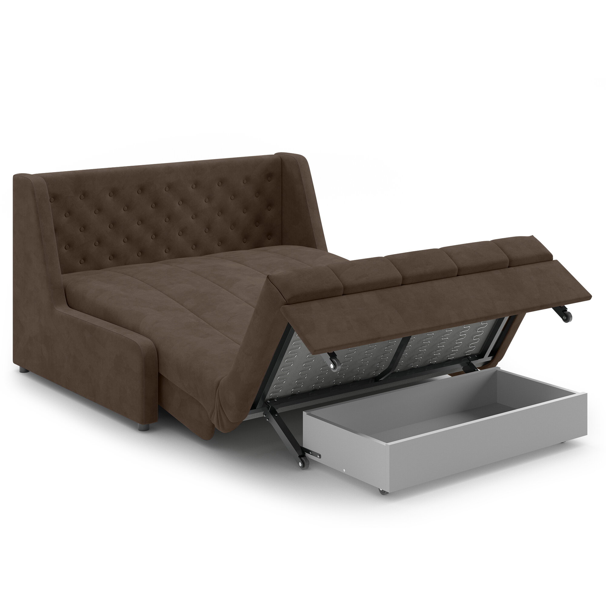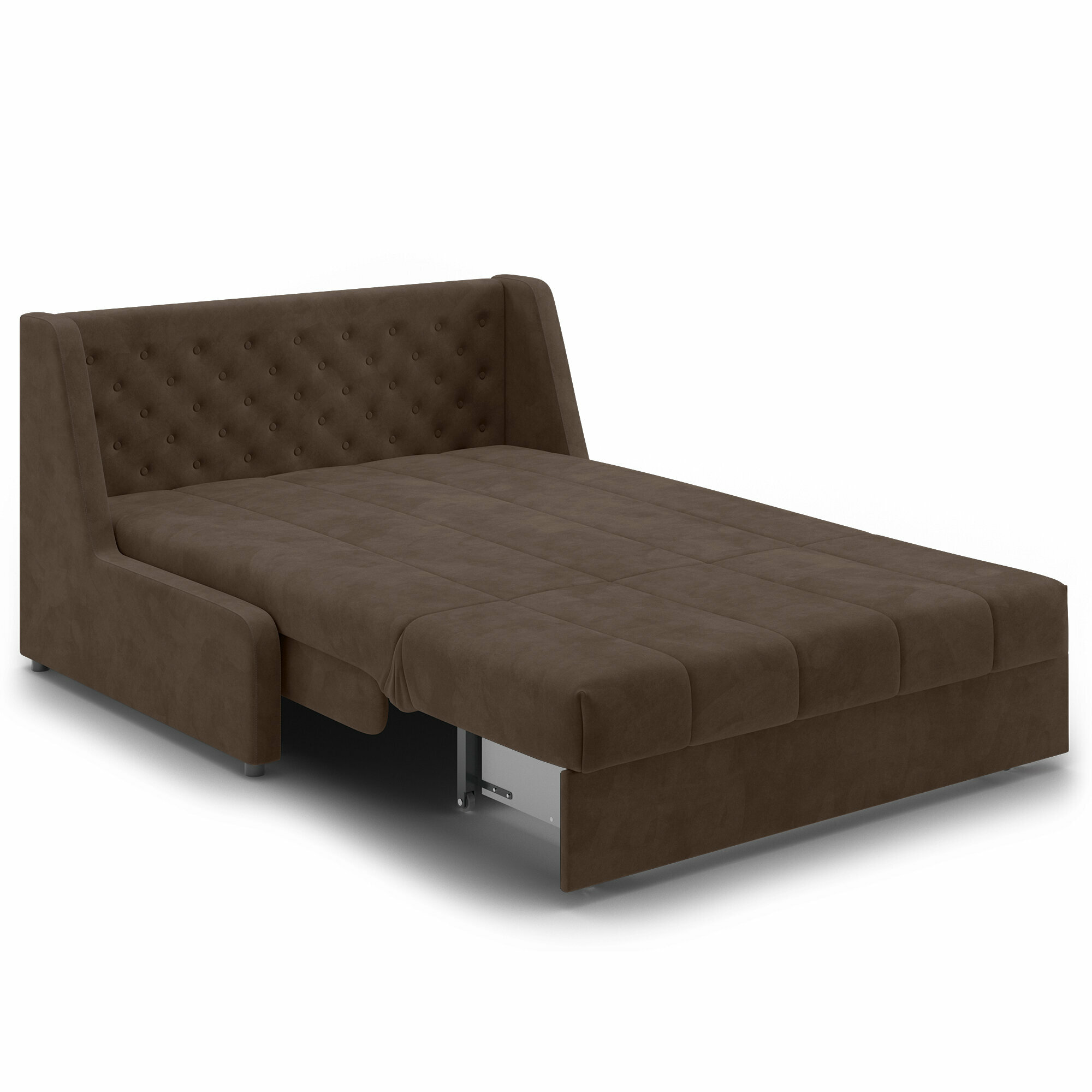 Купить Диван-кровать раскладной Прямой с ящиком на металлокаркасе, Аккордеон, ортопедический, 140х200, велюр коричневый