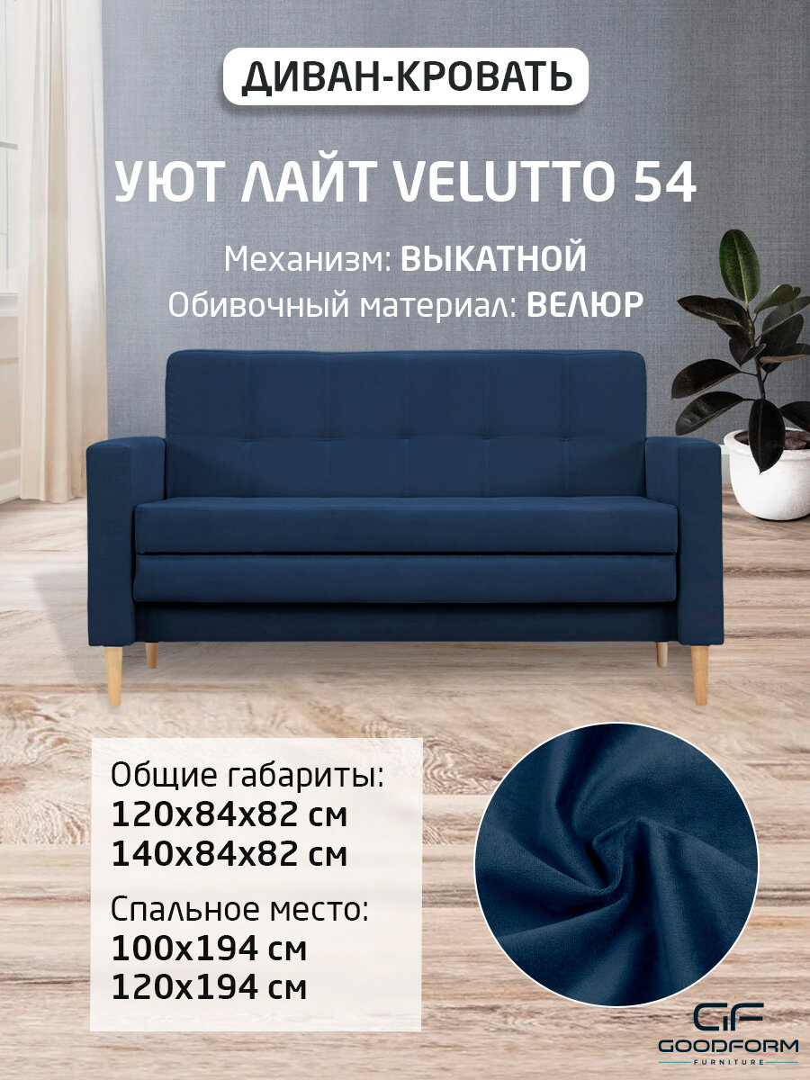 Диван Уют Лайт Velutto 54 120*84*82 см, Велютто Выкатной Фиеста