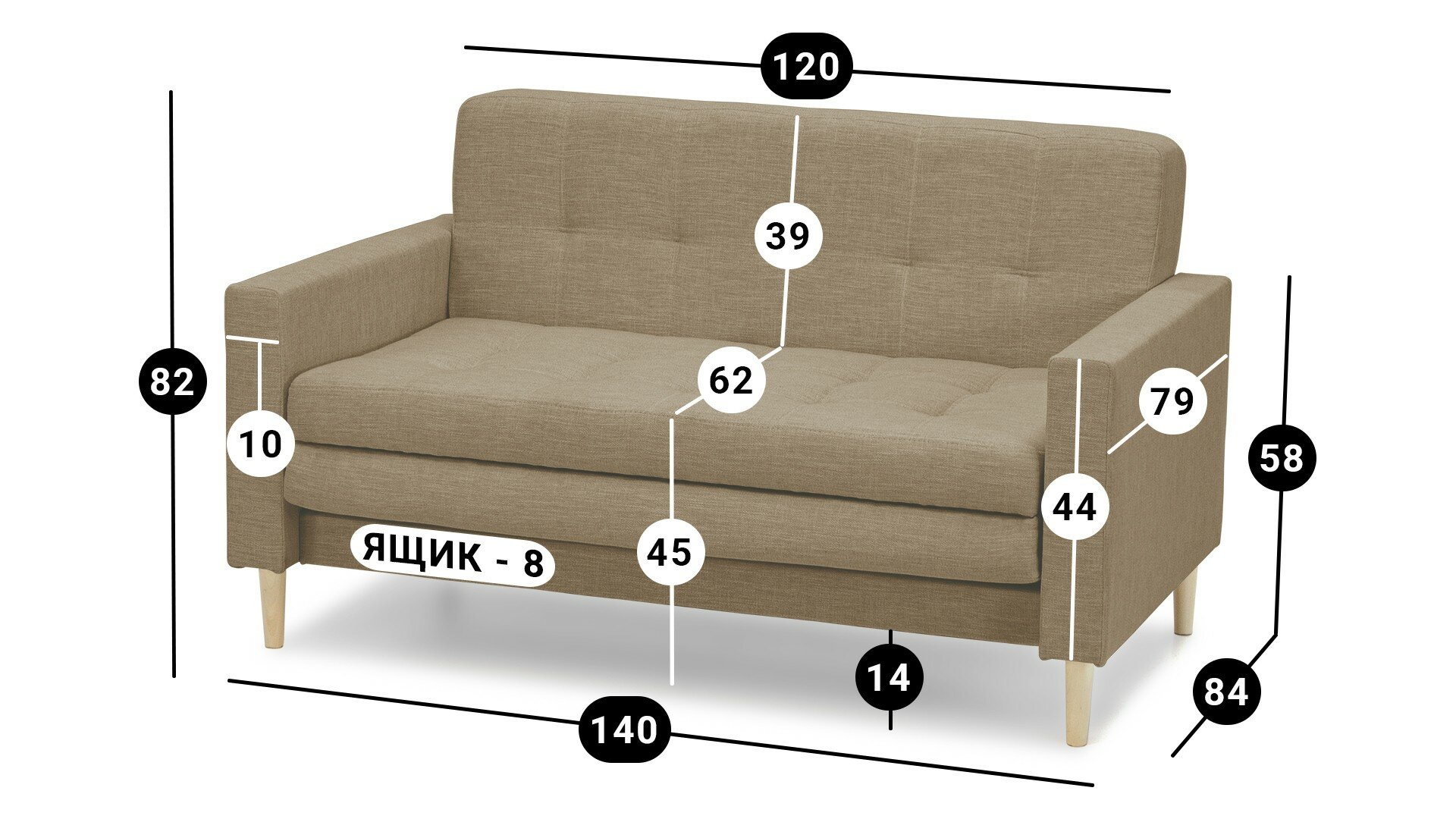Диван Уют Лайт Strong Plus 02 120*84*82 см, Рогожка Выкатной Фиеста