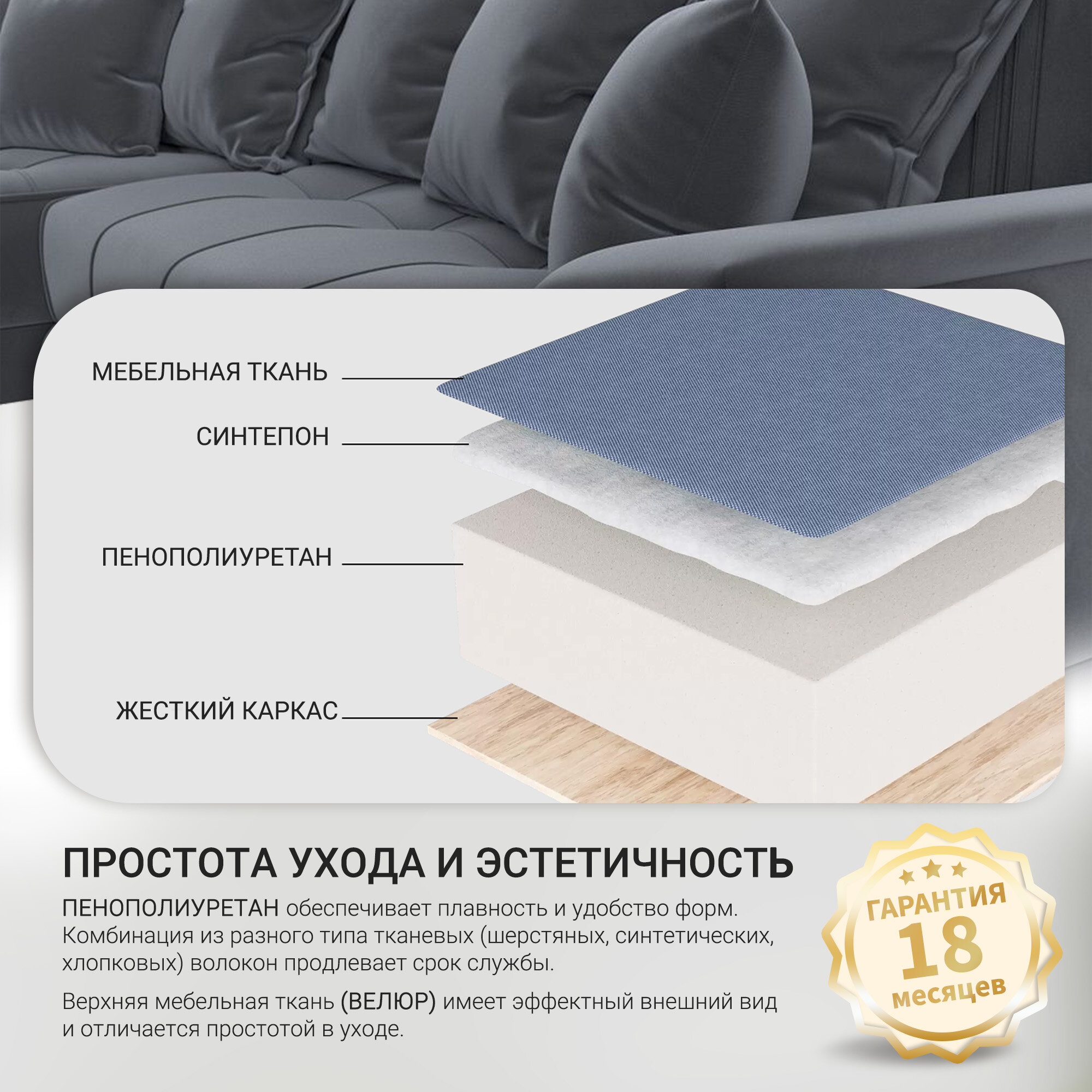 СохранитьДиван угловой НордСтар левый угол, велюр, механизм еврокнижка, серый, 284x190x93см. Хит Диванов интересное: