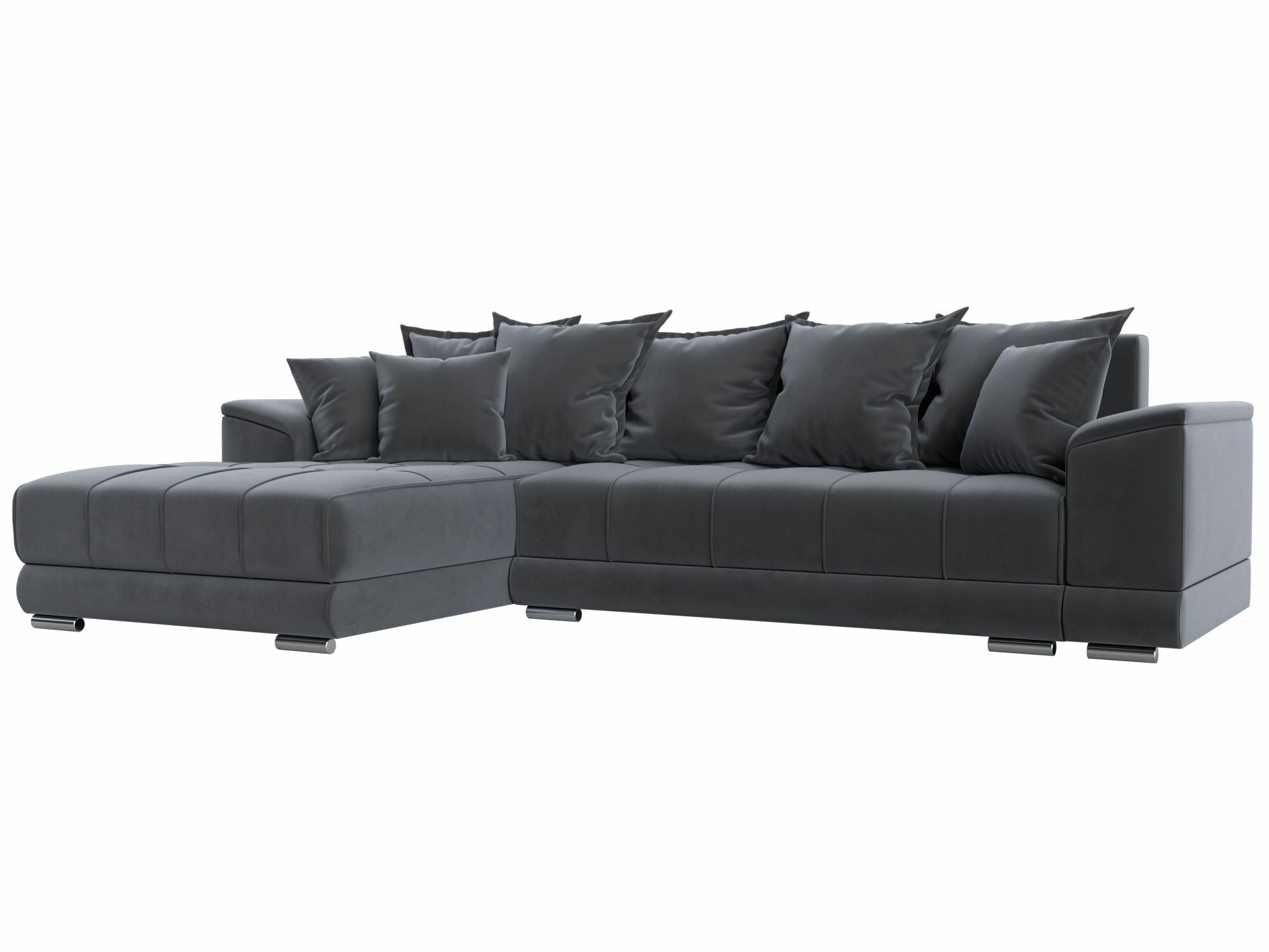 Купить Диван угловой НордСтар левый угол, велюр, механизм еврокнижка, серый, 284x190x93см. Хит Диванов