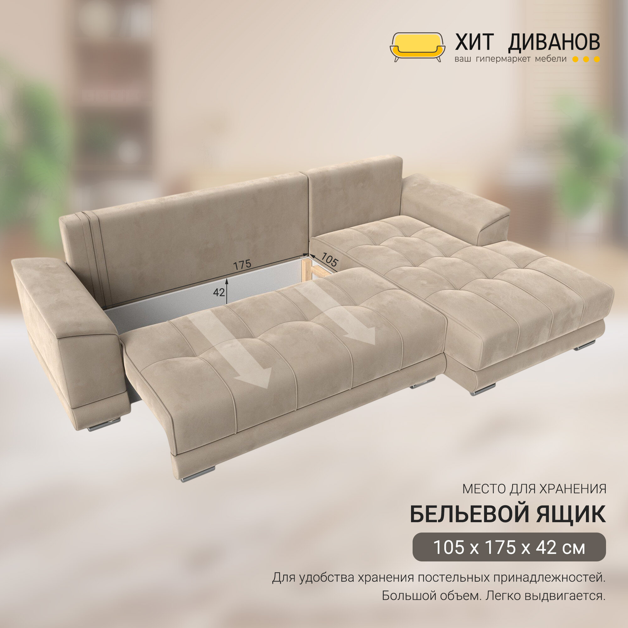 СохранитьДиван угловой НордСтар правый угол, велюр, механизм еврокнижка, бежевый, 284x190x93см. Хит Диванов интересное:
