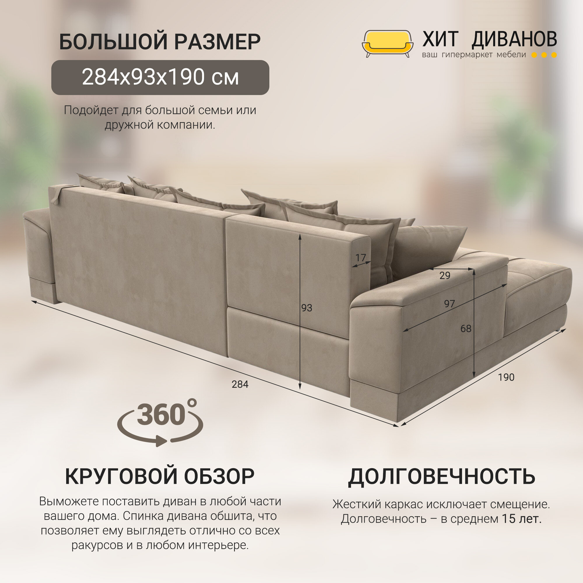 СохранитьДиван угловой НордСтар левый угол, велюр, механизм еврокнижка, бежевый, 284x190x93см. Хит Диванов интересное: