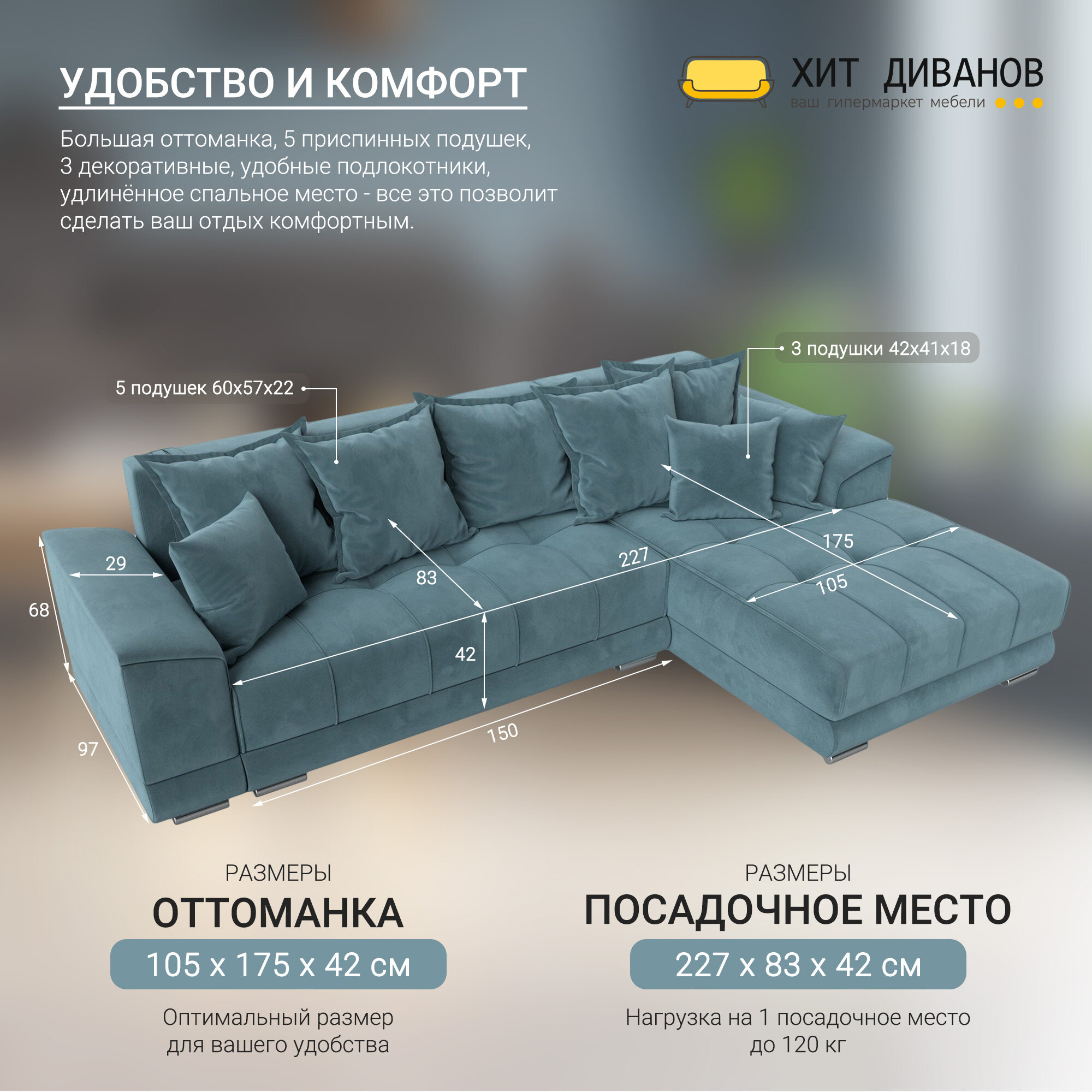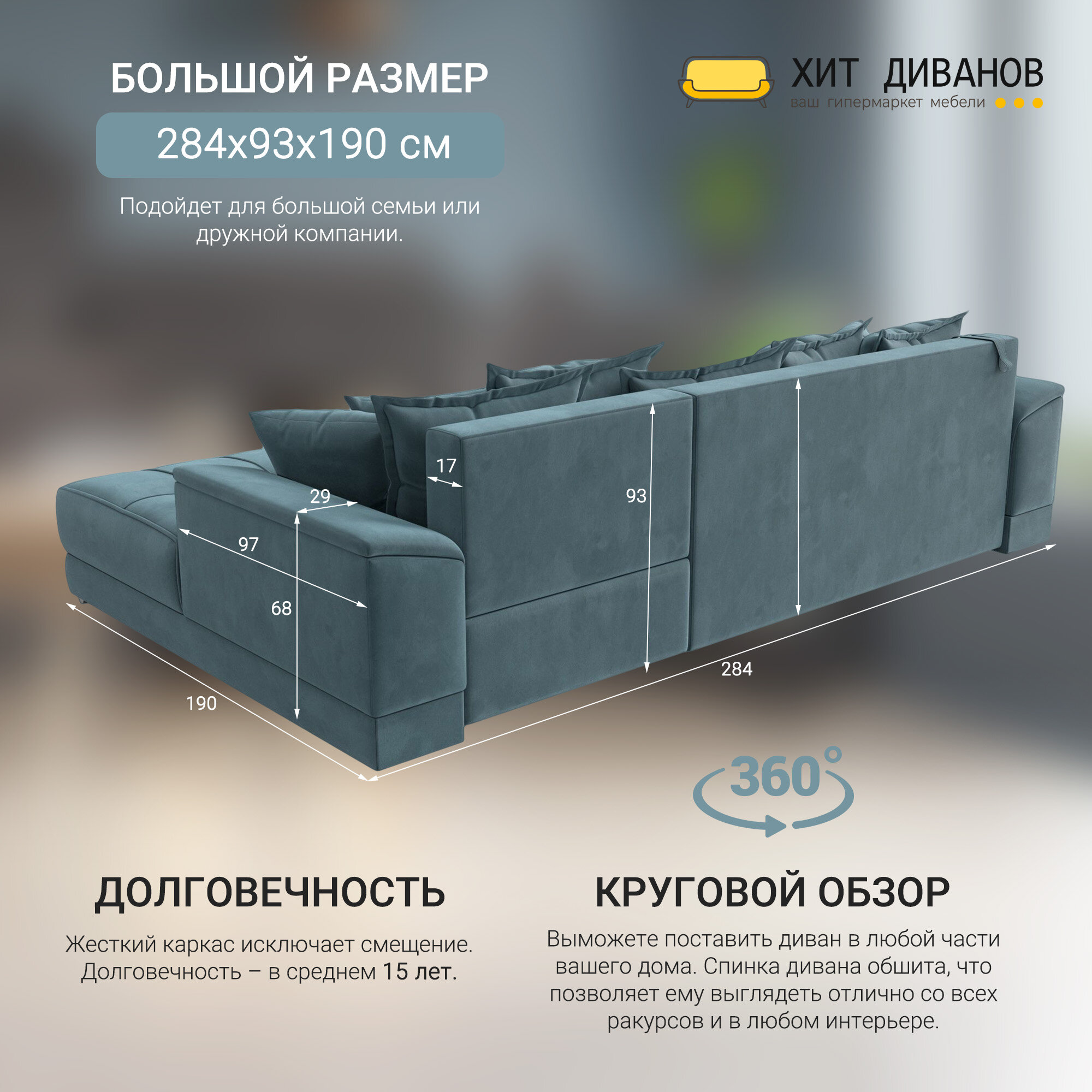 СохранитьДиван угловой НордСтар правый угол, велюр, механизм еврокнижка, бирюзовый, 284x190x93см. Хит Диванов интересное: