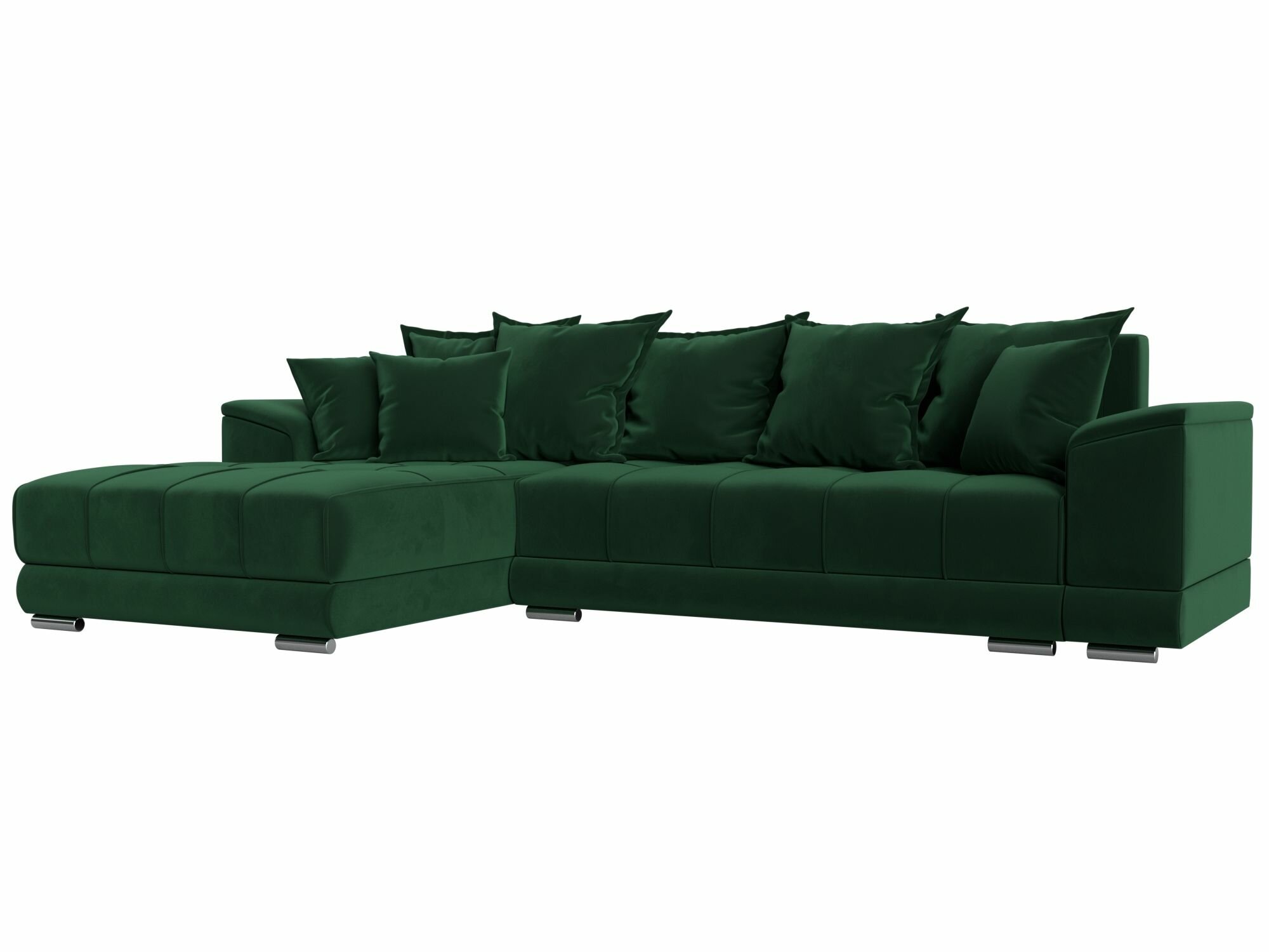 Диван угловой НордСтар левый угол, микровельвет, механизм еврокнижка, зеленый, 284x190x93см. Хит Диванов