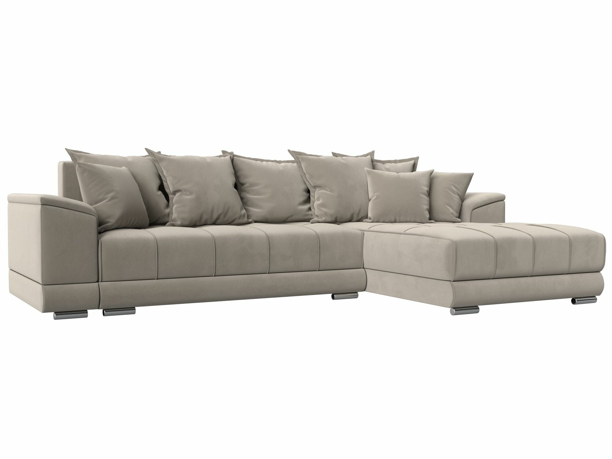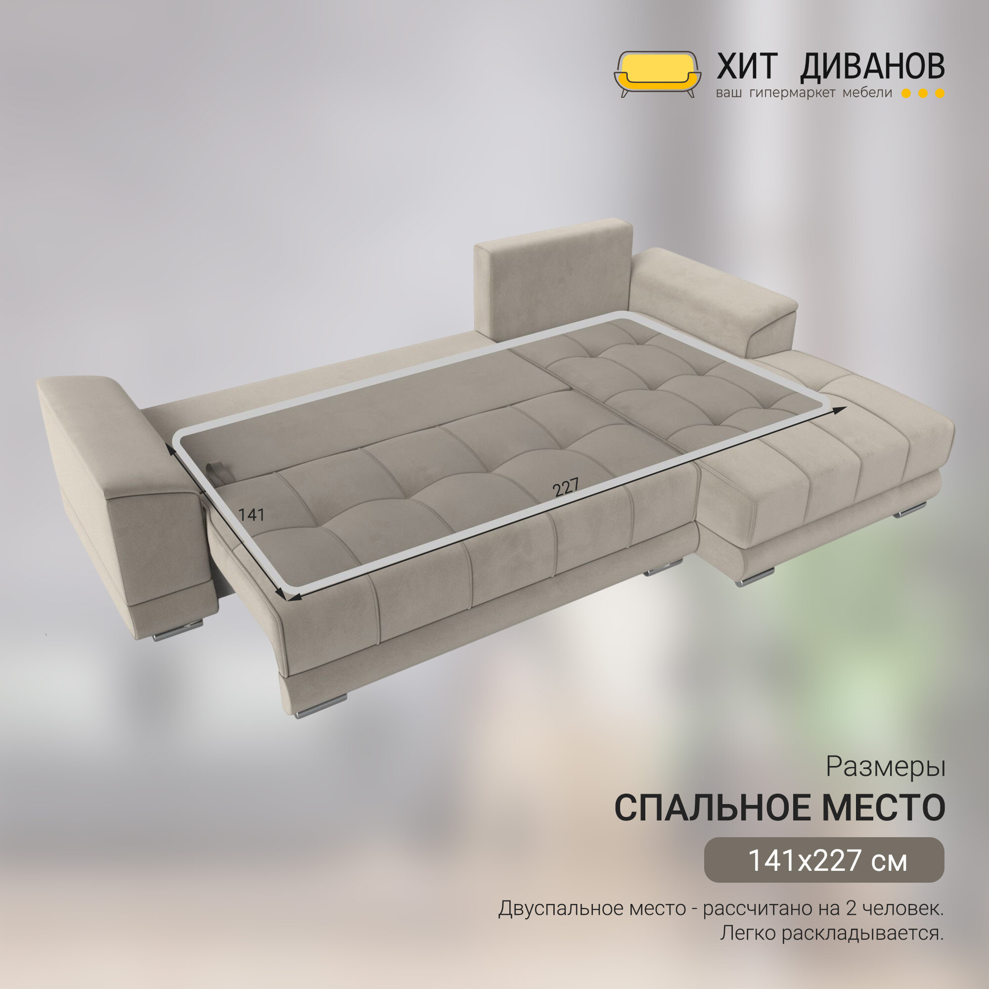 Диван угловой НордСтар правый угол, велюр, механизм еврокнижка, бежевый, 284x190x93см. Хит Диванов
