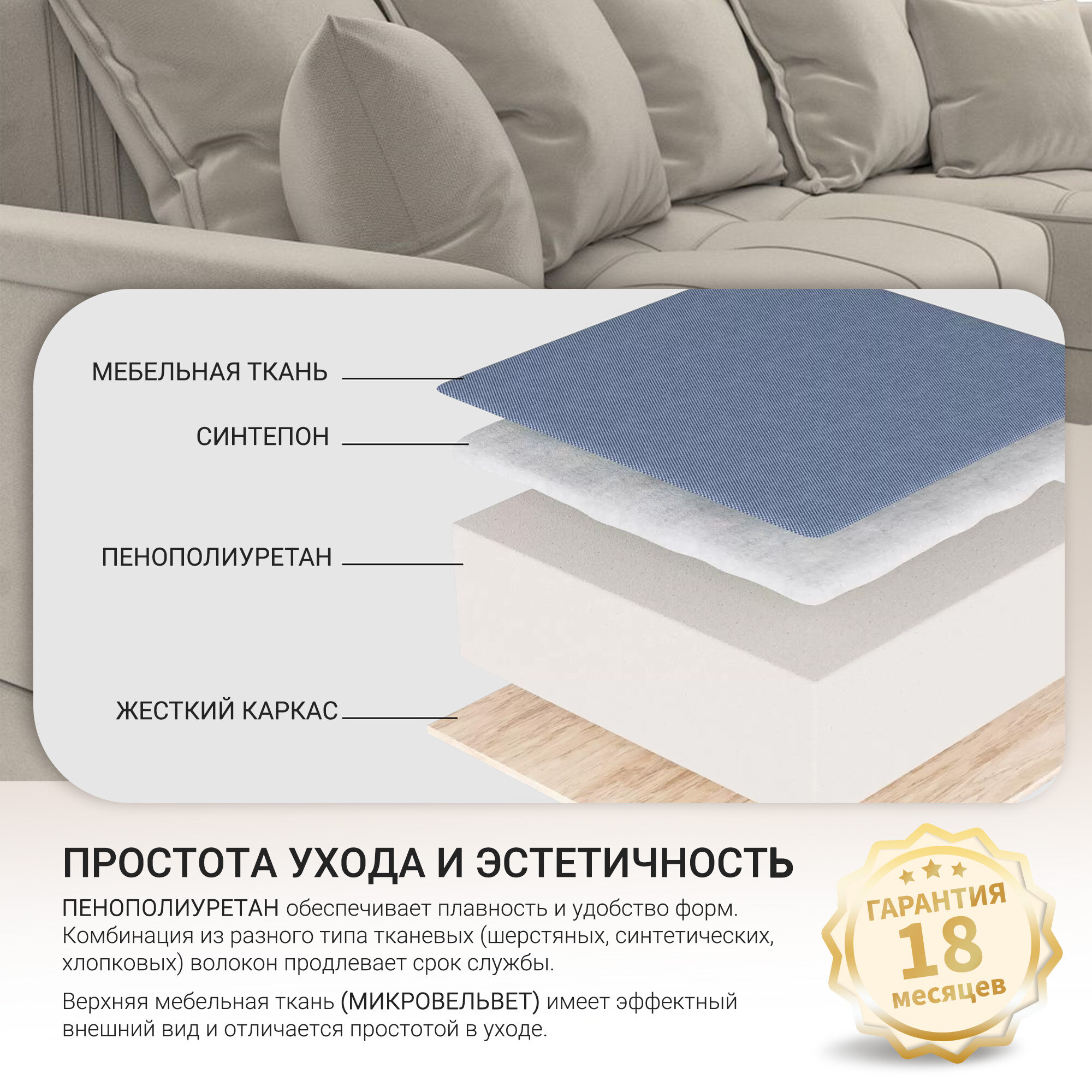 СохранитьДиван угловой НордСтар правый угол, микровельвет, механизм еврокнижка, бежевый, 284x190x93см. Хит Диванов интересное: