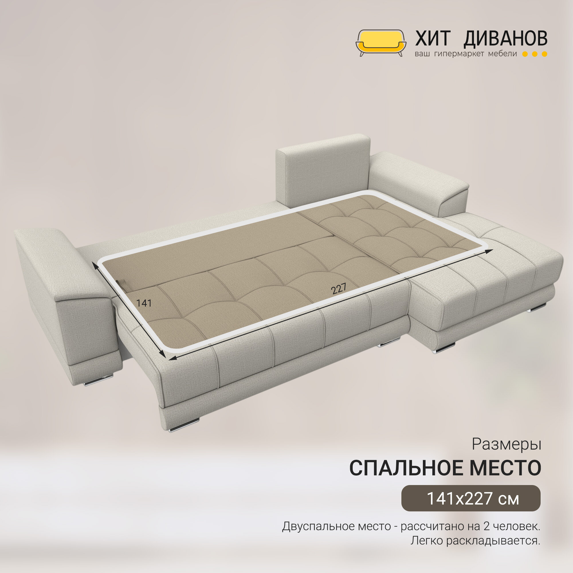 Купить Диван угловой НордСтар правый угол, рогожка, механизм еврокнижка, Амур бежевый, 284x190x93см. Хит Диванов