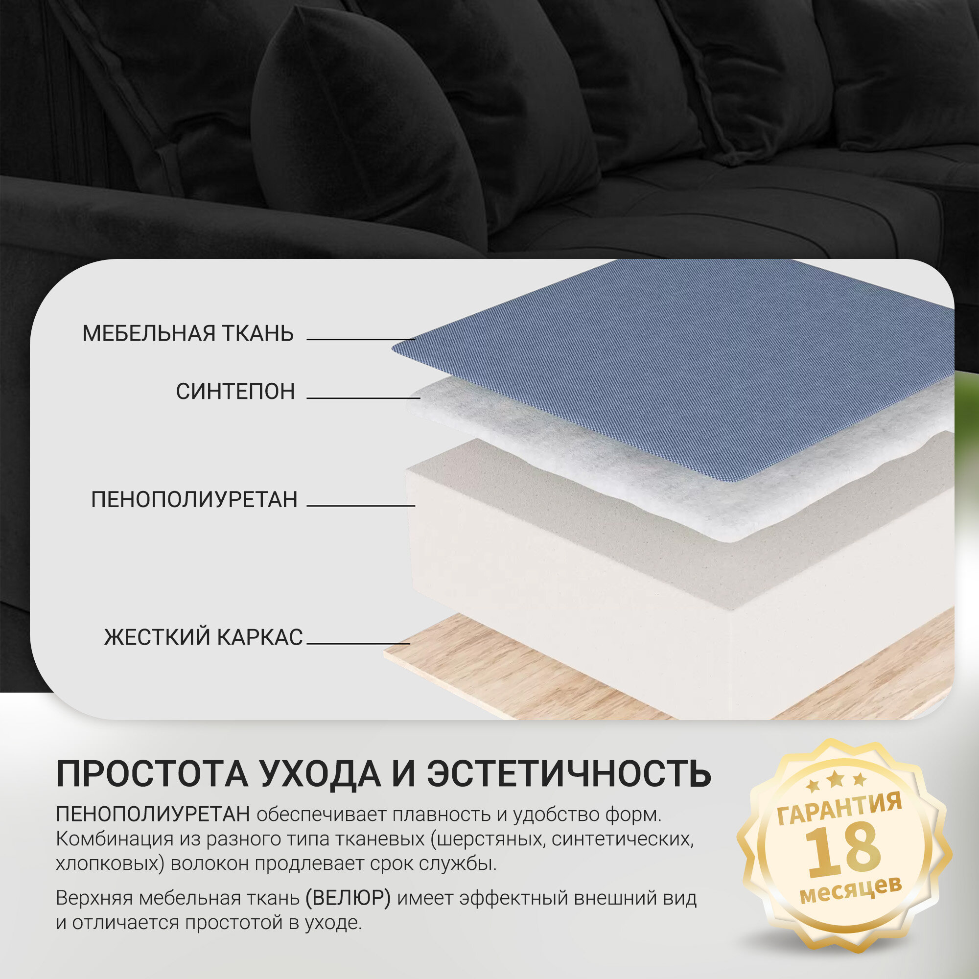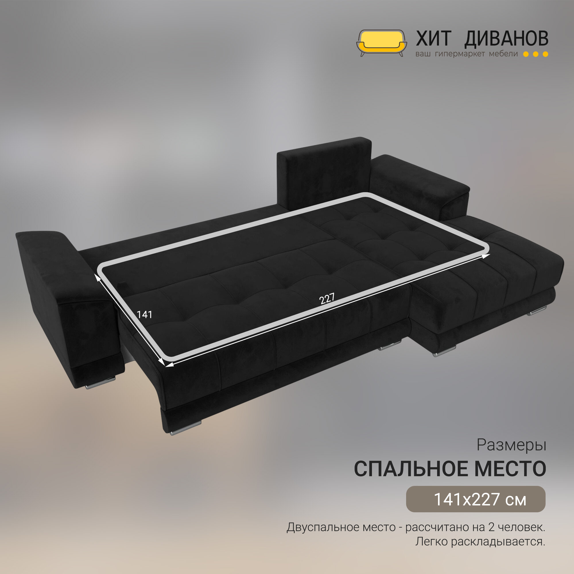 СохранитьДиван угловой НордСтар правый угол, велюр, механизм еврокнижка, черный, 284x190x93см. Хит Диванов интересное: