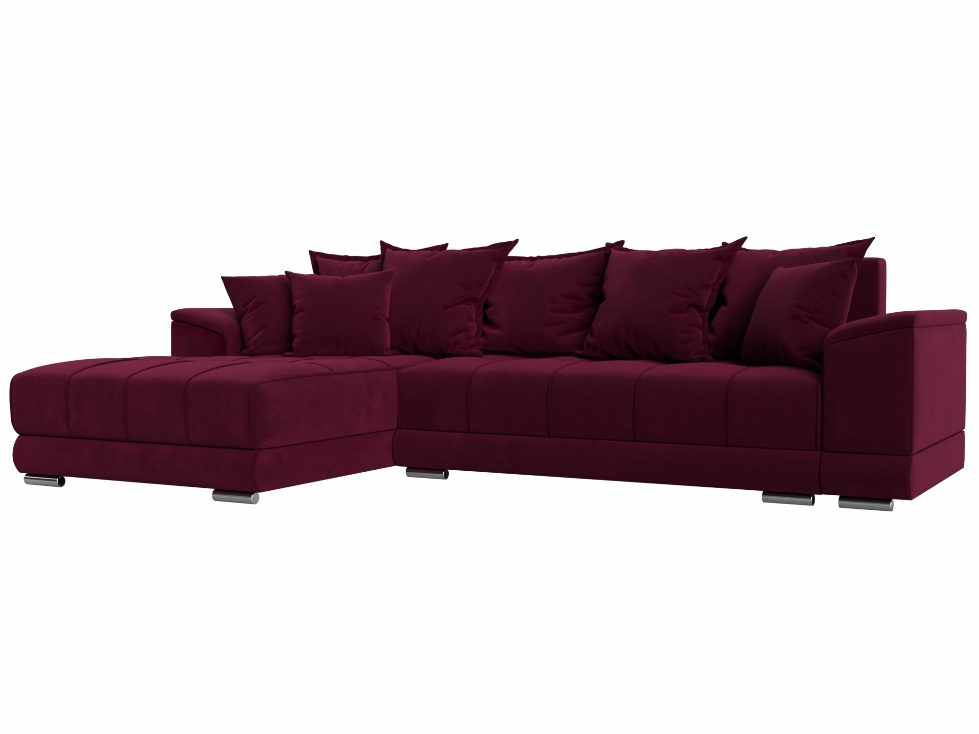 Купить Диван угловой НордСтар левый угол, микровельвет, механизм еврокнижка, Бордовый, 284x190x93см. Хит Диванов