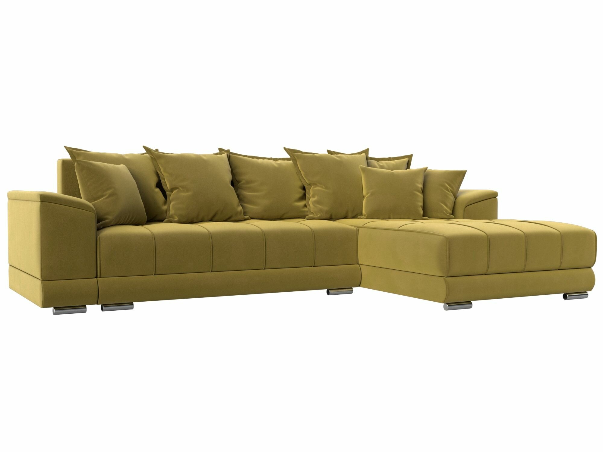 Купить Диван угловой НордСтар правый угол, микровельвет, механизм еврокнижка, желтый, 284x190x93см. Хит Диванов