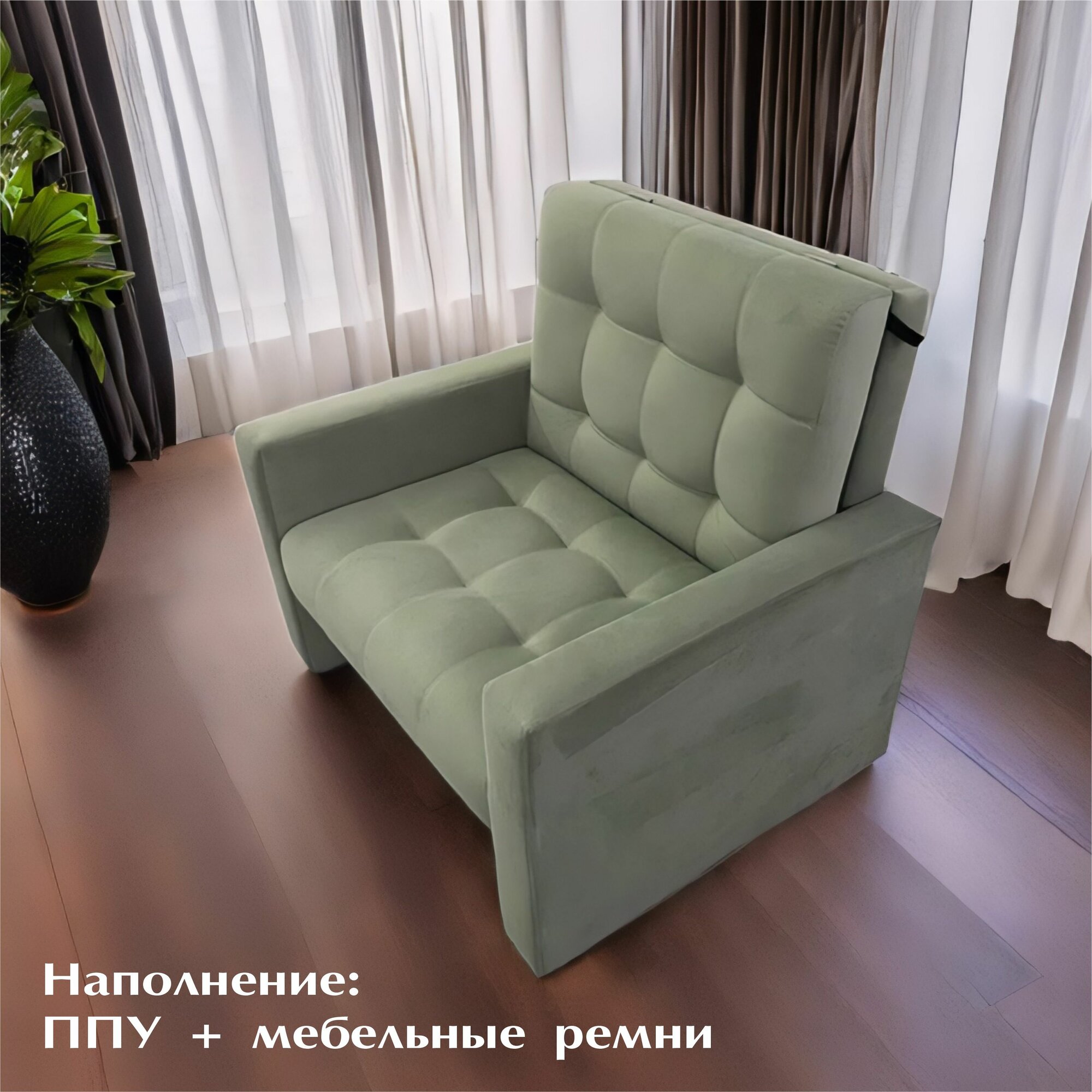 Кресло-кровать Рокки, со спальным местом 100х190 см, Кресло, Наполнение: ППУ + мебельные ремни, зелёный