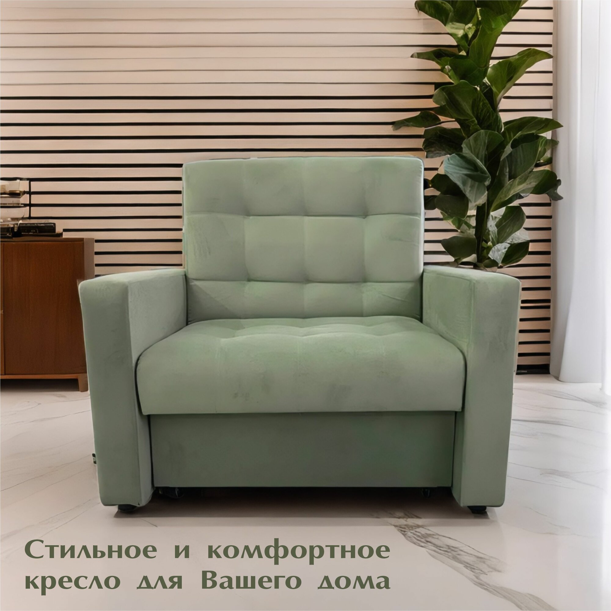 Кресло-кровать Рокки, со спальным местом 120х190 см, Кресло, Наполнение: ППУ + мебельные ремни, зелёный