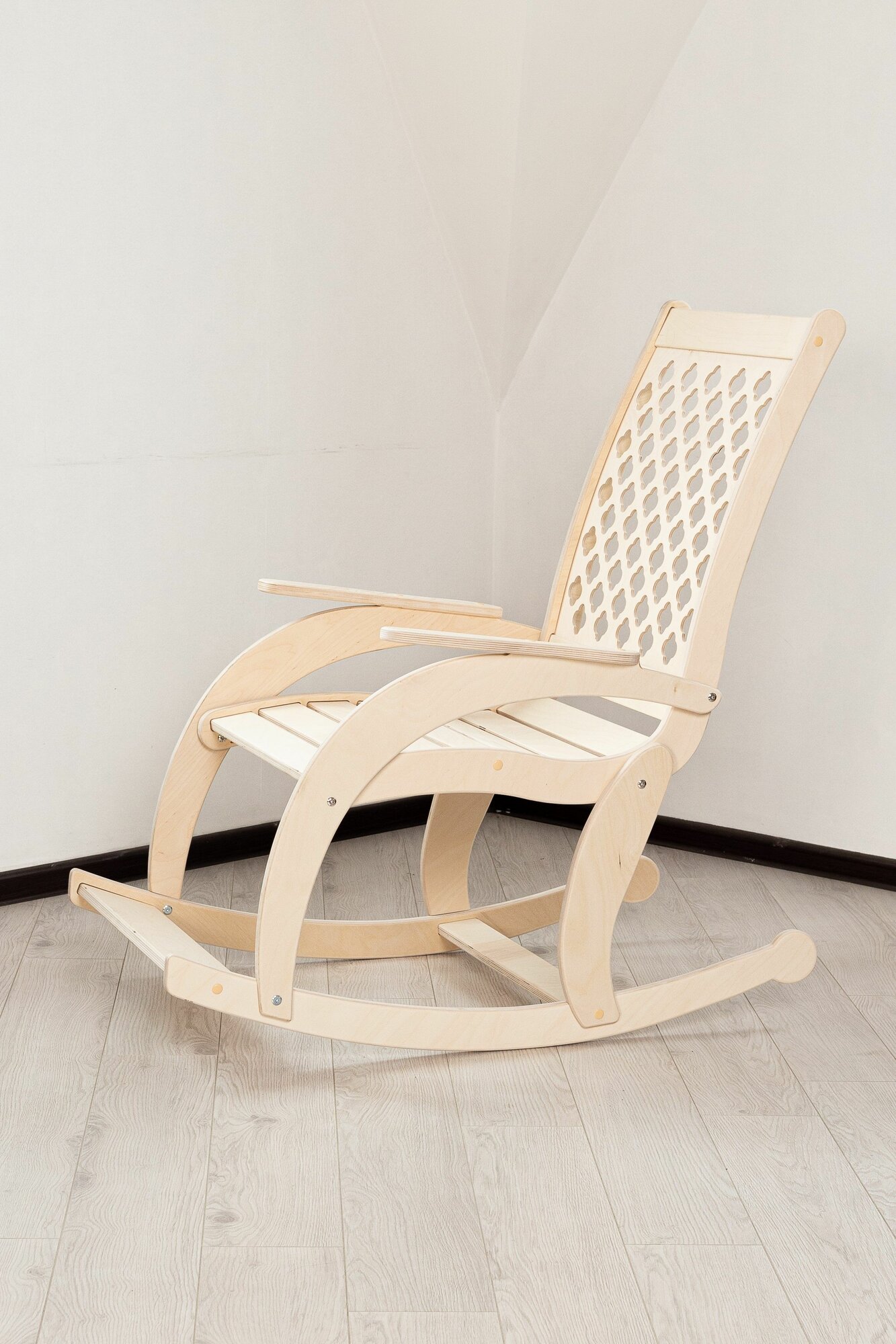 Кресло качалка для дома, дачи деревянное без покраски ажурная спинка интересное: