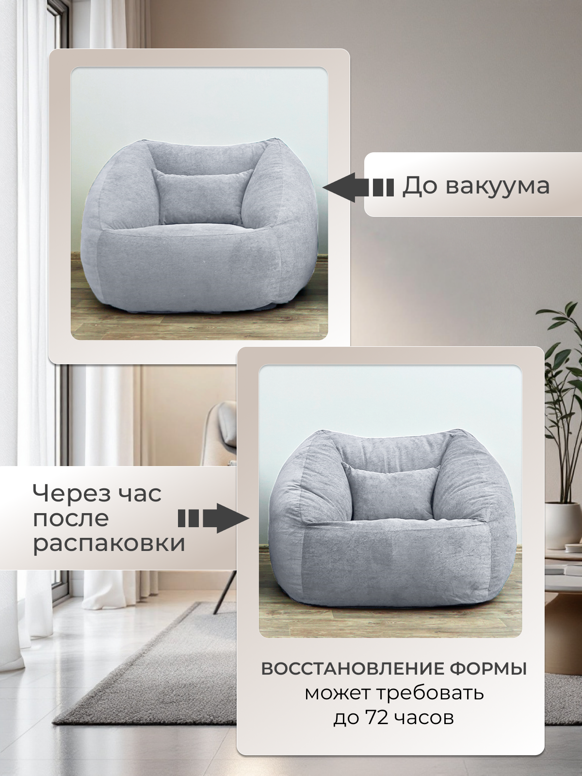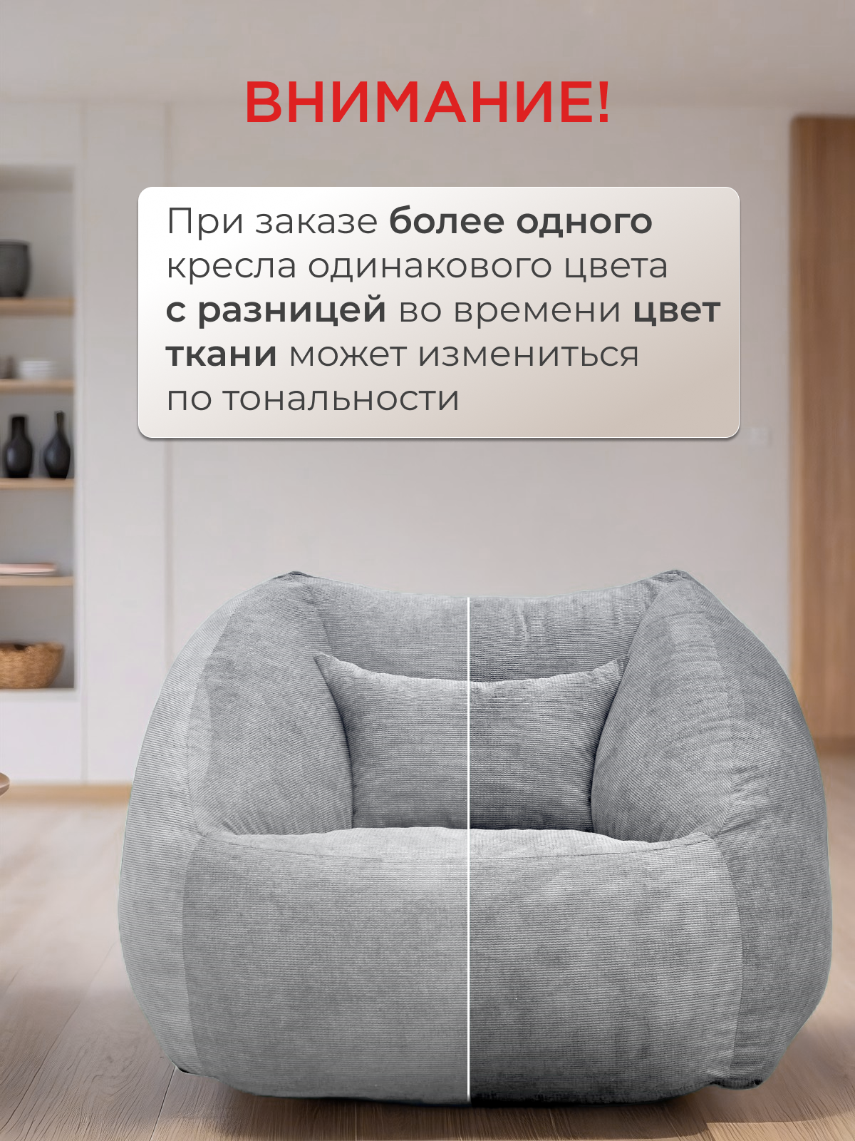 Кресло-пуф бескаркасное Ramelka CAPRI, микровелюровый чехол, съёмный, серый интересное:
