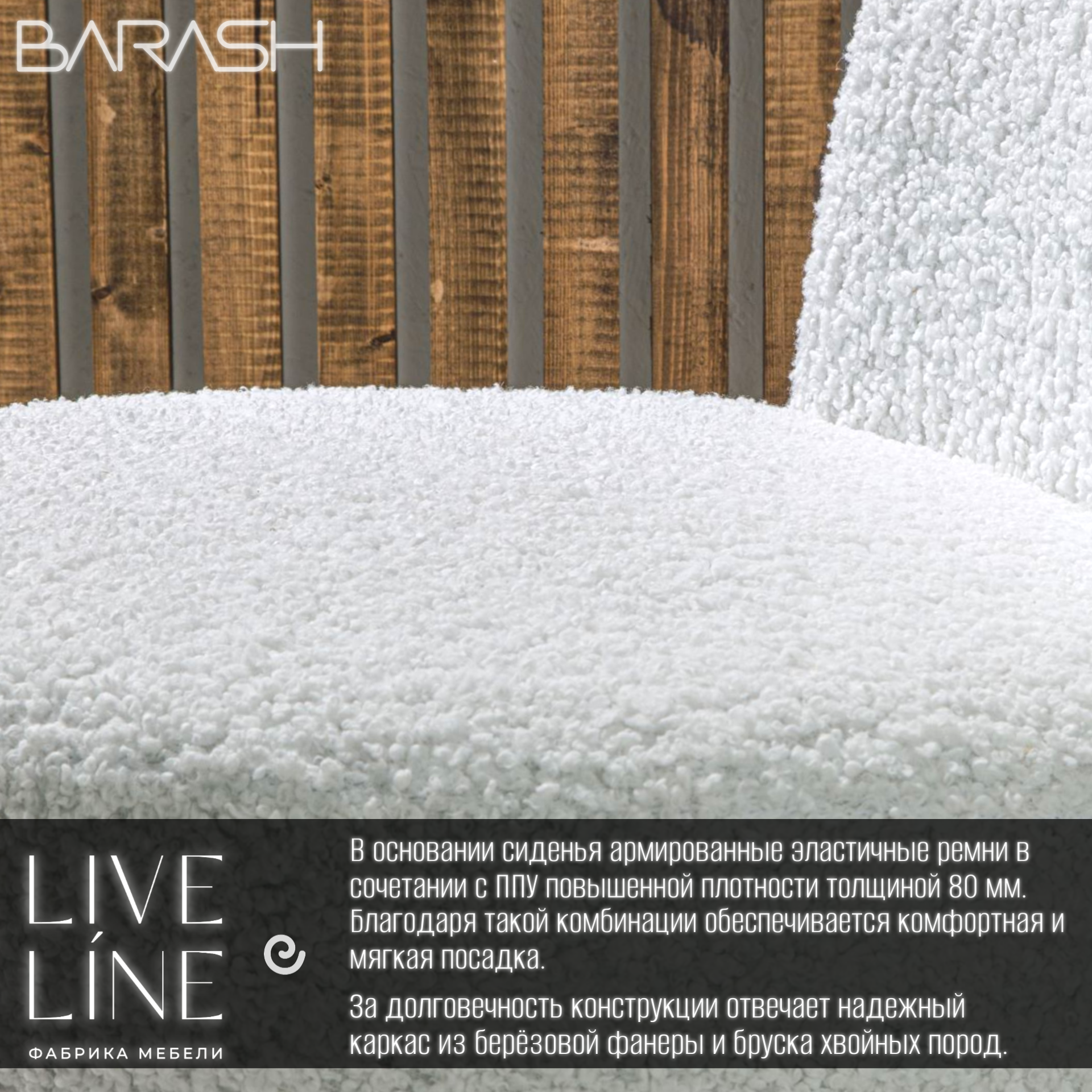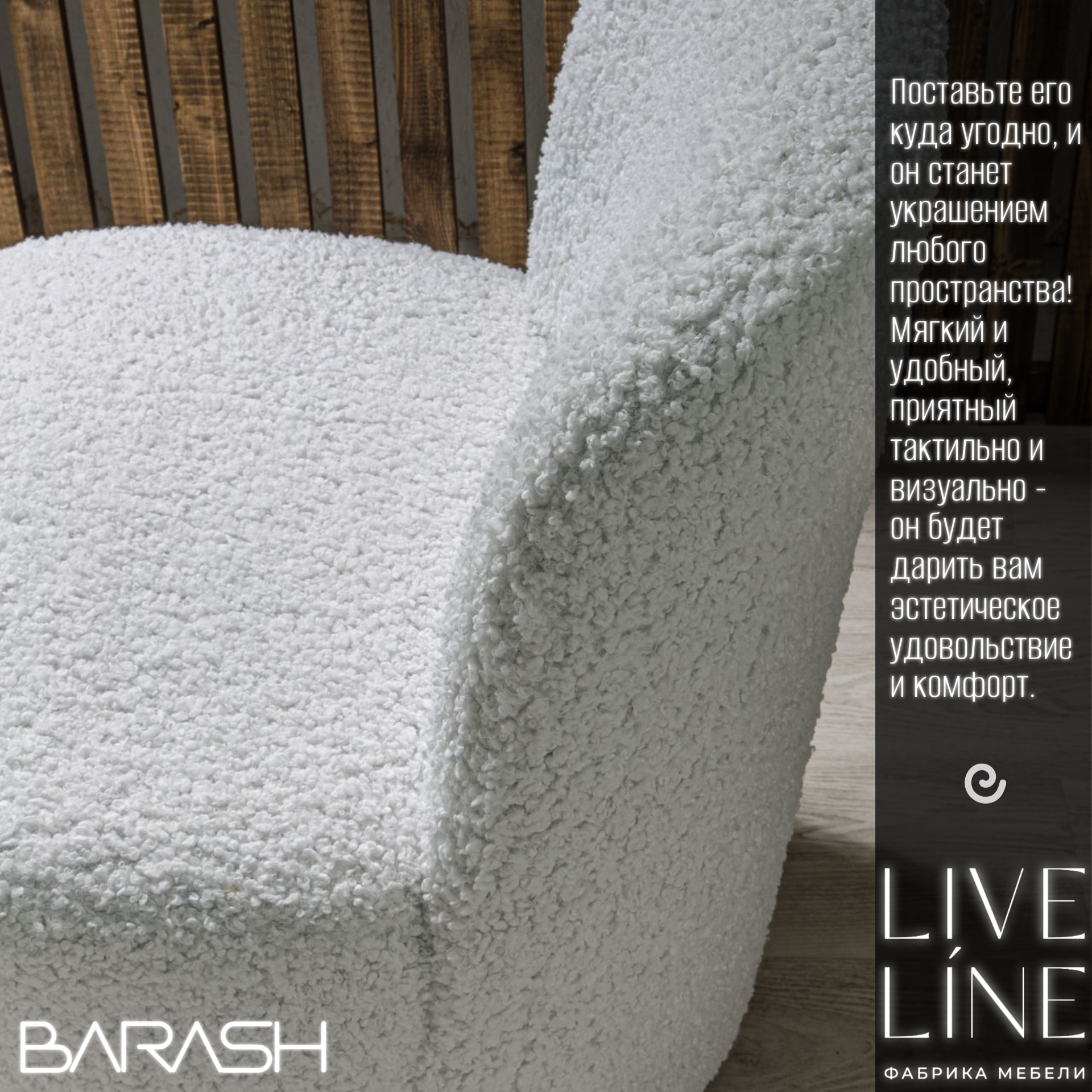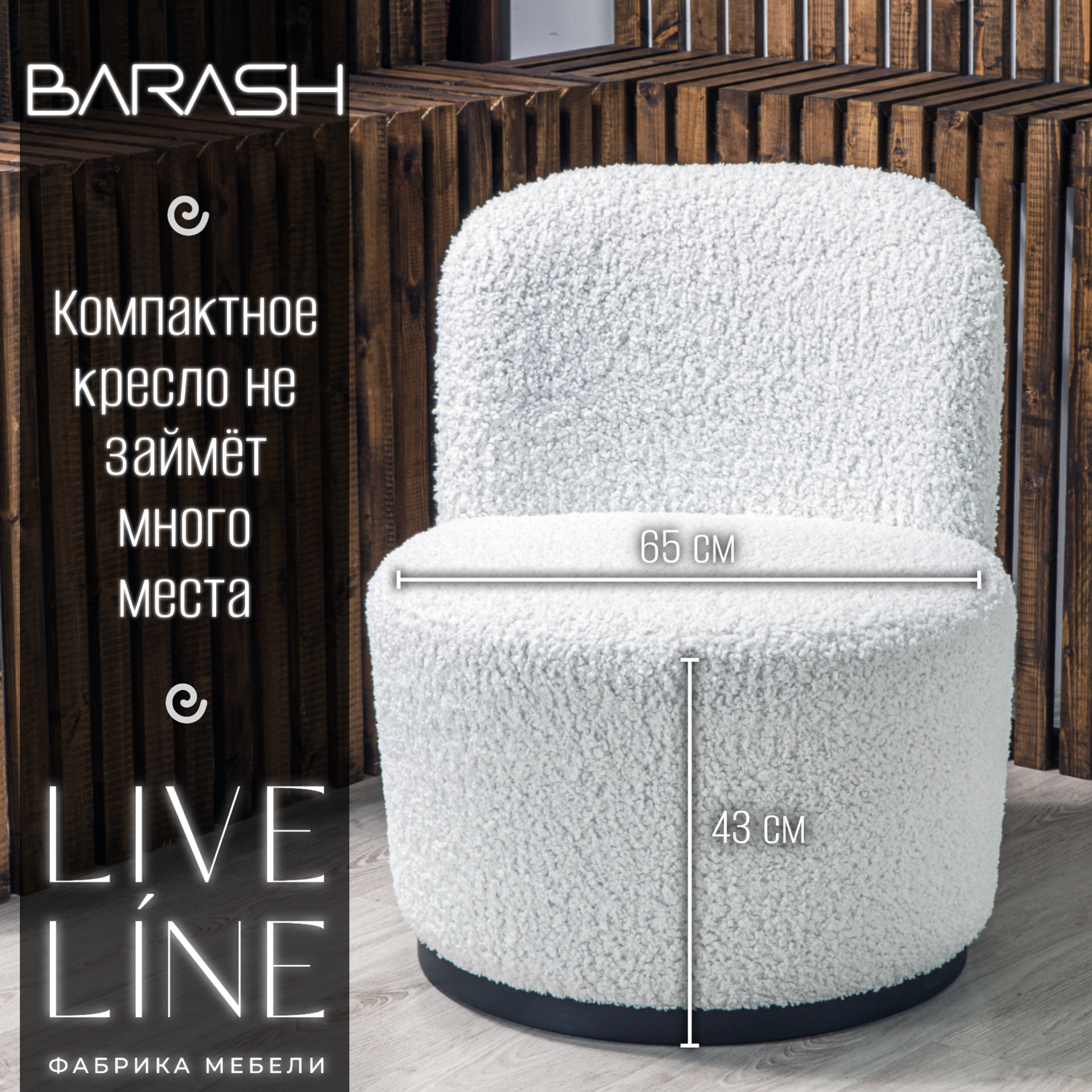 Кресло Live Line "Barash" белое Букле 65х65х85см, на поворотном механизме интересное: