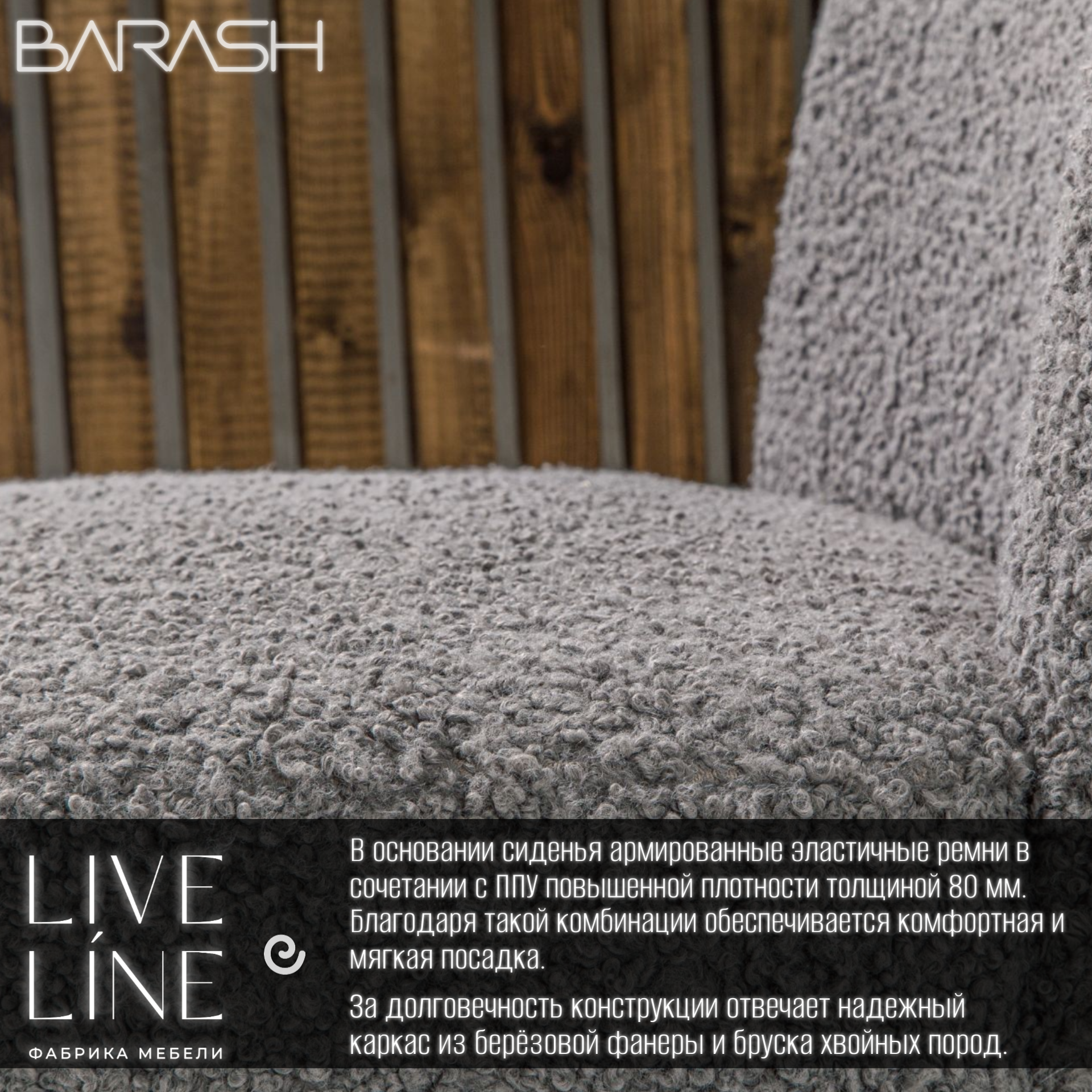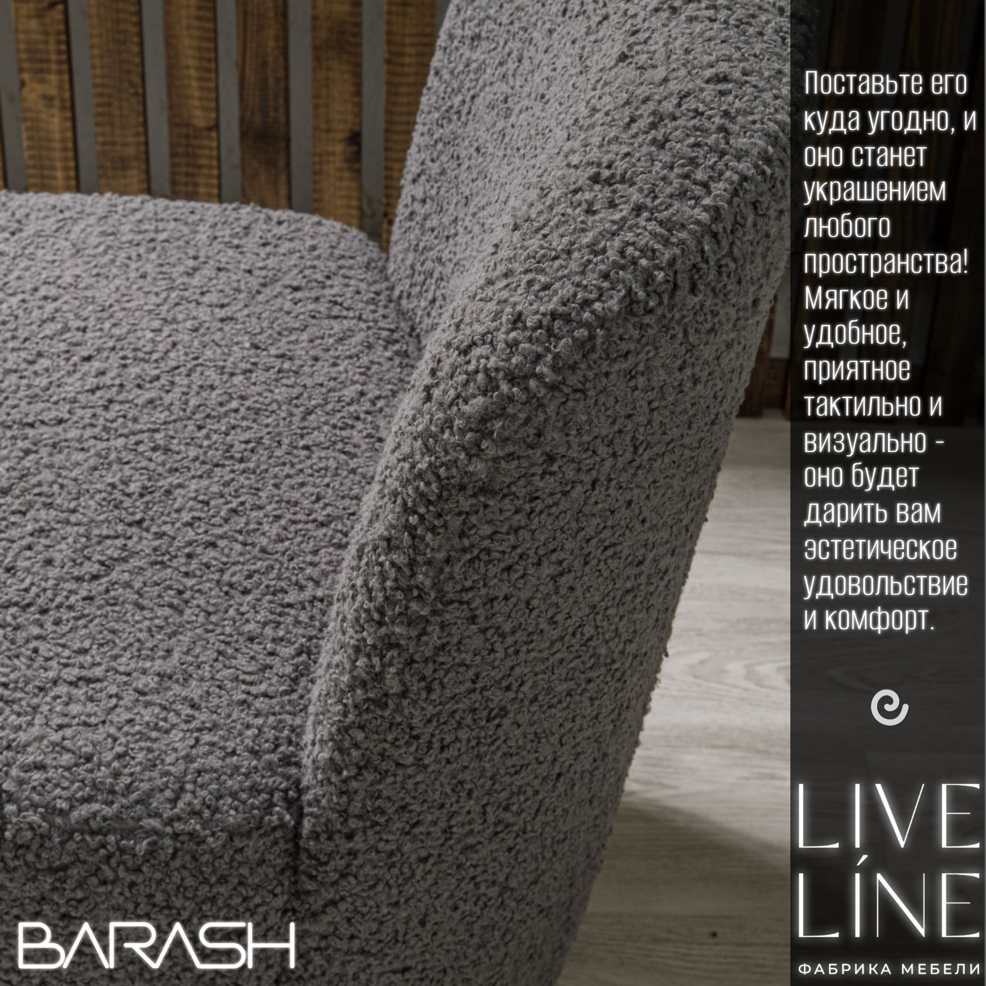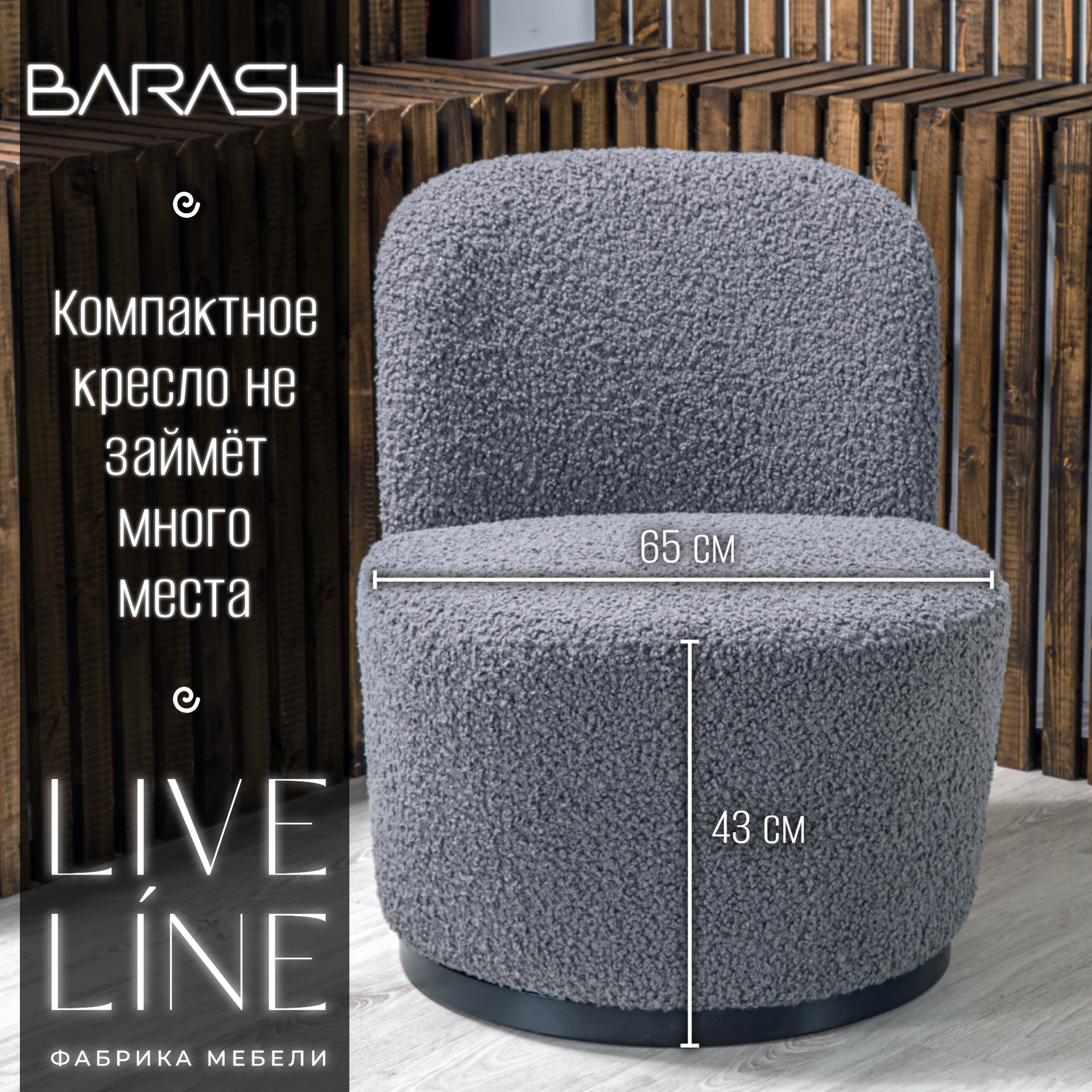 Кресло Live Line "Barash" графит Букле 65х65х85см, на поворотном механизме интересное: