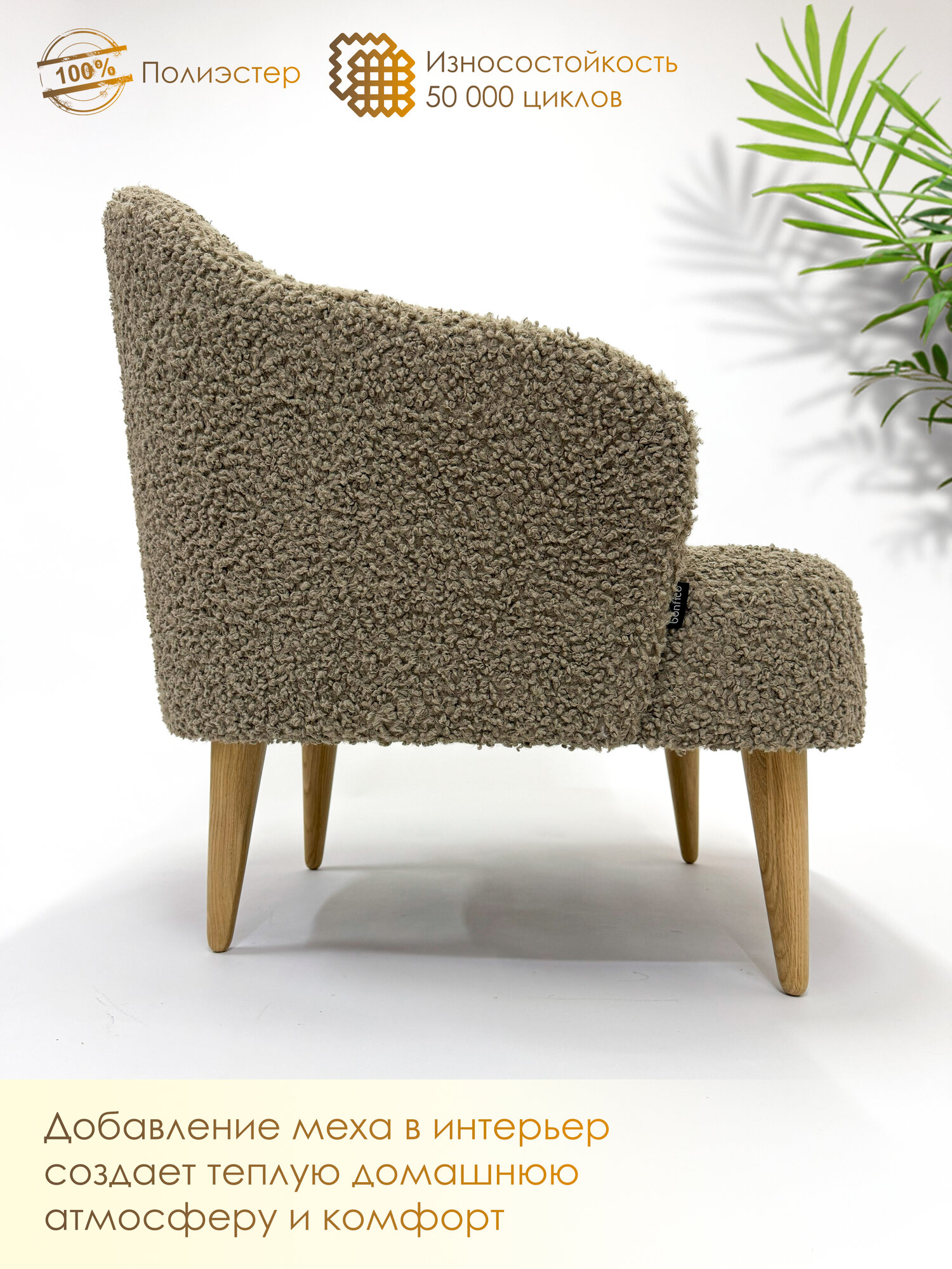 Кресло Bonfico "Унно"для дома и отдыха, ткань барашек, коричневое, опоры массива ДУБА интересное: