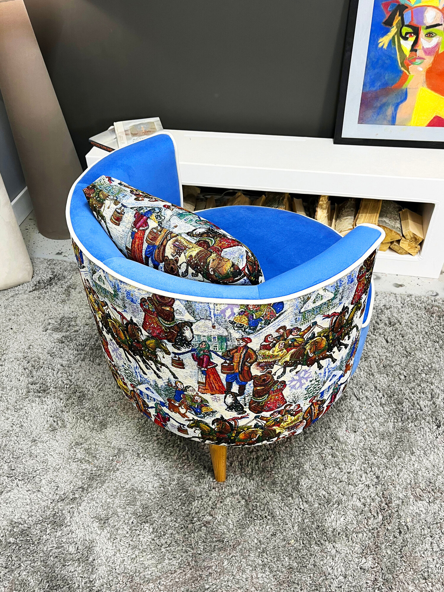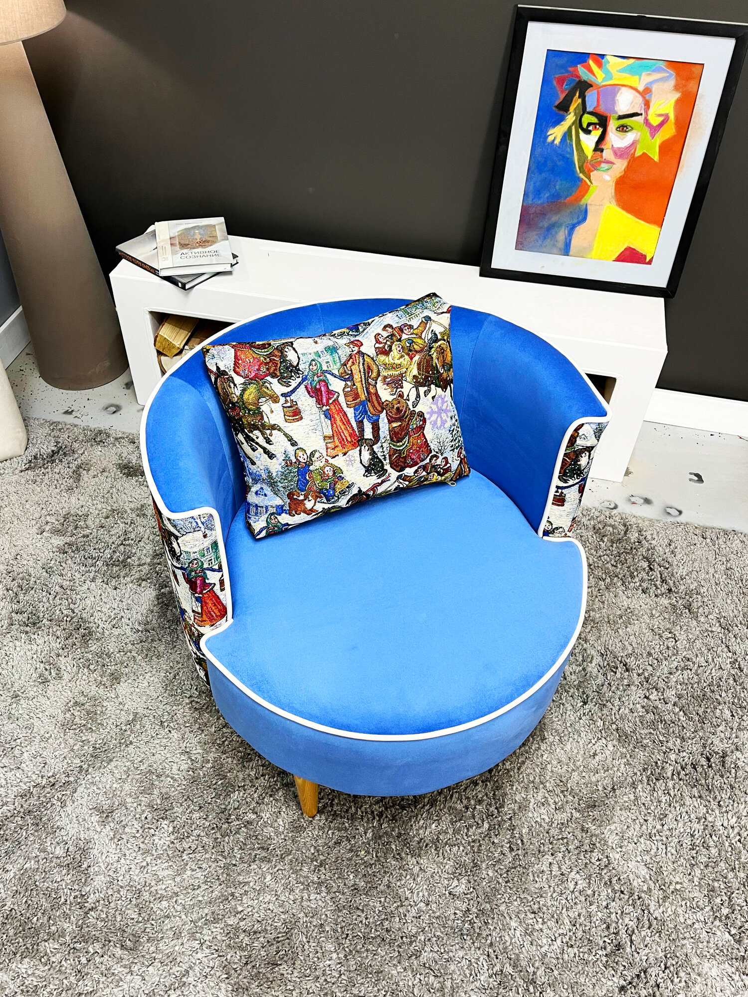 Кресло DECORTA "DAVINCHI", гобелен + велюр, с подушкой, 64х65х64 см, цвет синий интересное: