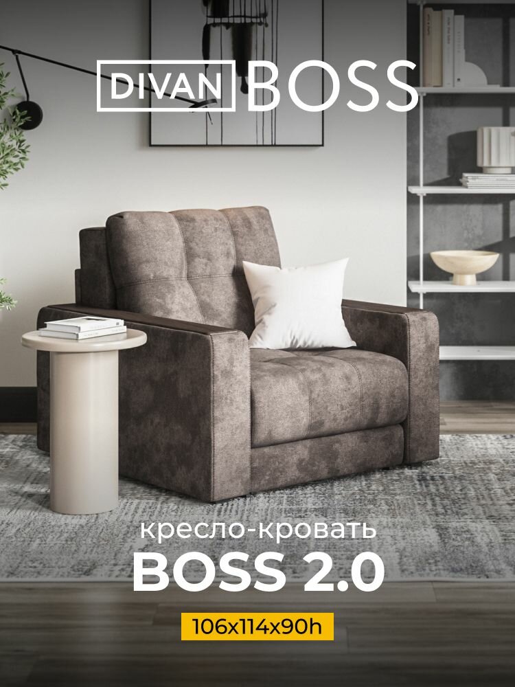 Кресло-кровать раскладное BOSS 2.0, механизм easy roll, велюр Royal стоун, 106х114х90 см