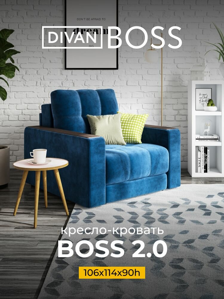 СохранитьКресло-кровать раскладное BOSS 2.0, механизм easy roll, велюр Monolit синий, 106х114х90 см интересное: